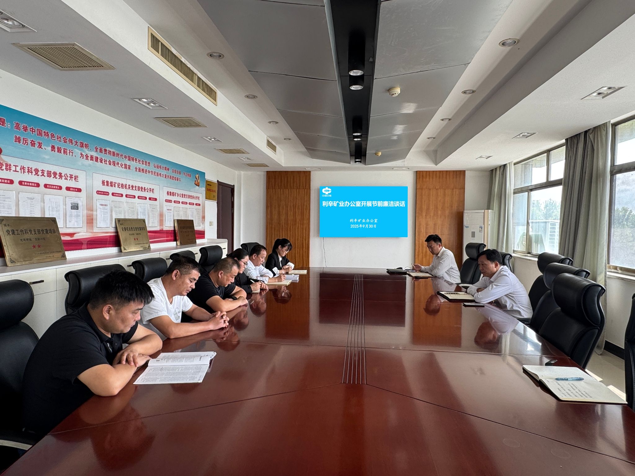 “国庆”“中秋”将至,为“深入贯彻中央八项规定精神学习教育”及其实施细则,筑牢节日期间廉洁工作要求,9月30日,利辛矿业办公室党支部开展节前廉洁谈话。