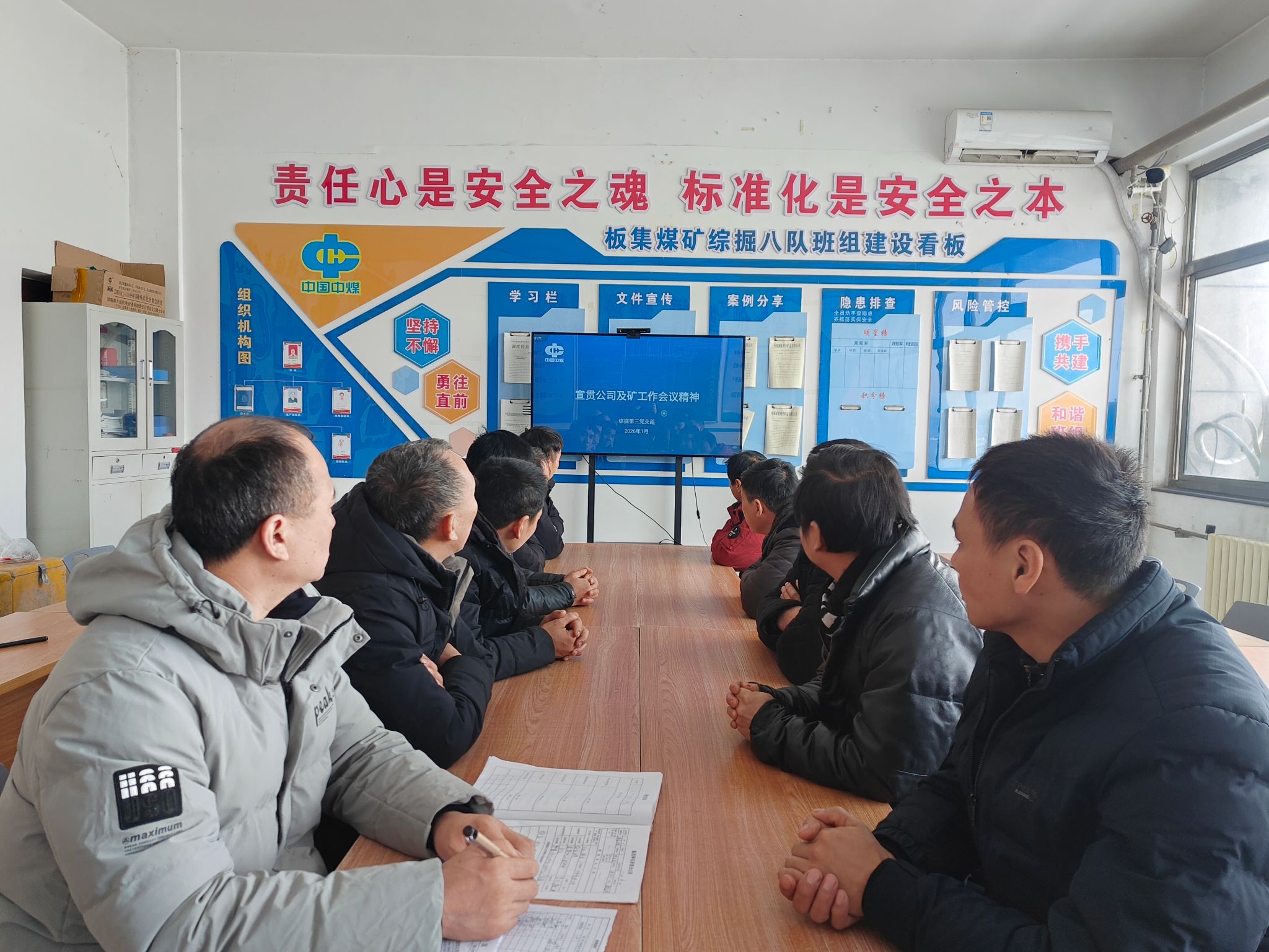 近日,利辛矿业综掘第三党支部开展公司及矿2026年工作会议精神专题学习,该支部全体干部职工迅速掀起学习贯彻会议精神的热潮,以思想统一凝聚行动共识,以实干担当谱写高质量发展新篇章。