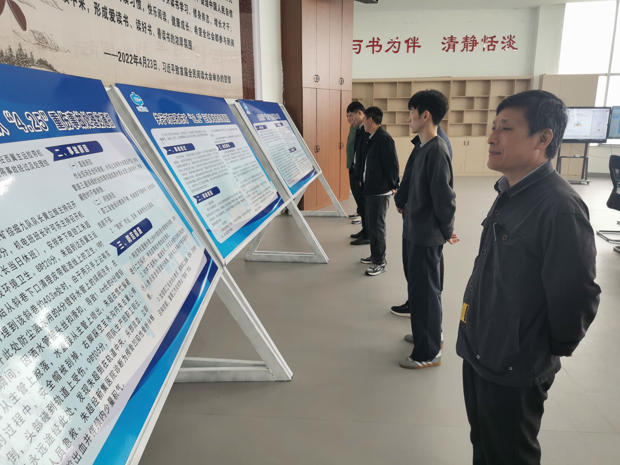 为筑牢安全生产思想防线,近日,利辛矿业综掘六队组织干部职工走进“警示教育活动室”,集中参观学习事故案例警示牌板。
