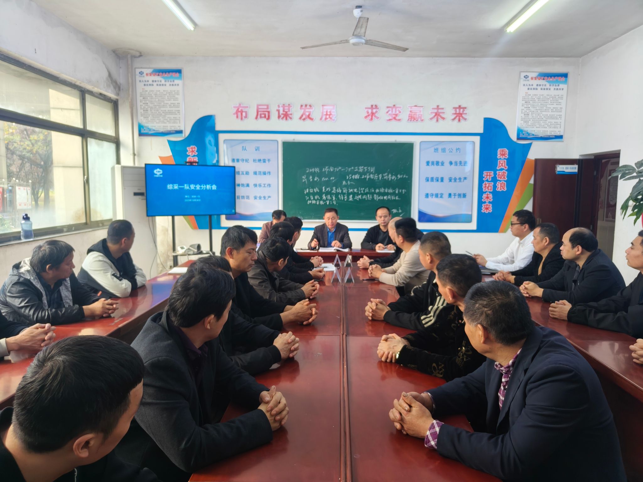 10月30日,利辛矿业综采一队在区队会议室组织召开10月份安全生产分析会。分析总结10月份工作,对不足之处展开反思、研讨,对下个月工作进行安排部署,制定工作计划。综采一队管技人员、生产办副主任刘宝参加会议。