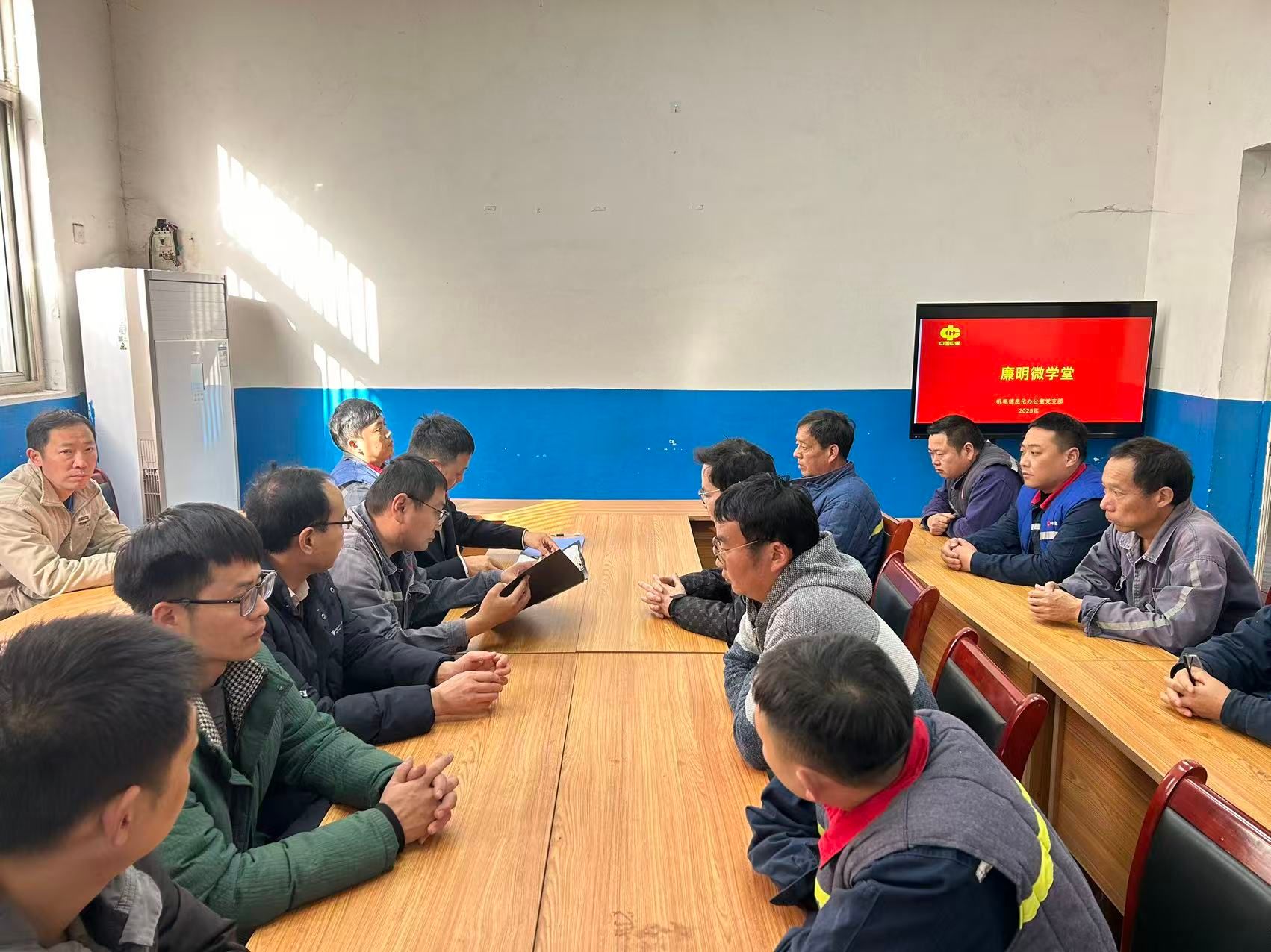 活动以“短、实、活”为特点,避开工作繁忙时段,利用15分钟“碎片时间”搭建学习平台。支部委员围绕机电岗位廉洁风险防控要点开讲,结合行业内设备招标、配件管理等典型案例,拆解岗位中易忽视的廉洁隐患,明确“不碰红线、不越底线”的具体要求;党员骨干结合自身工作实际,分享“廉洁操作小技巧”,提出“配件验收双人复核”等建议,让廉洁教育不再“空对空”。