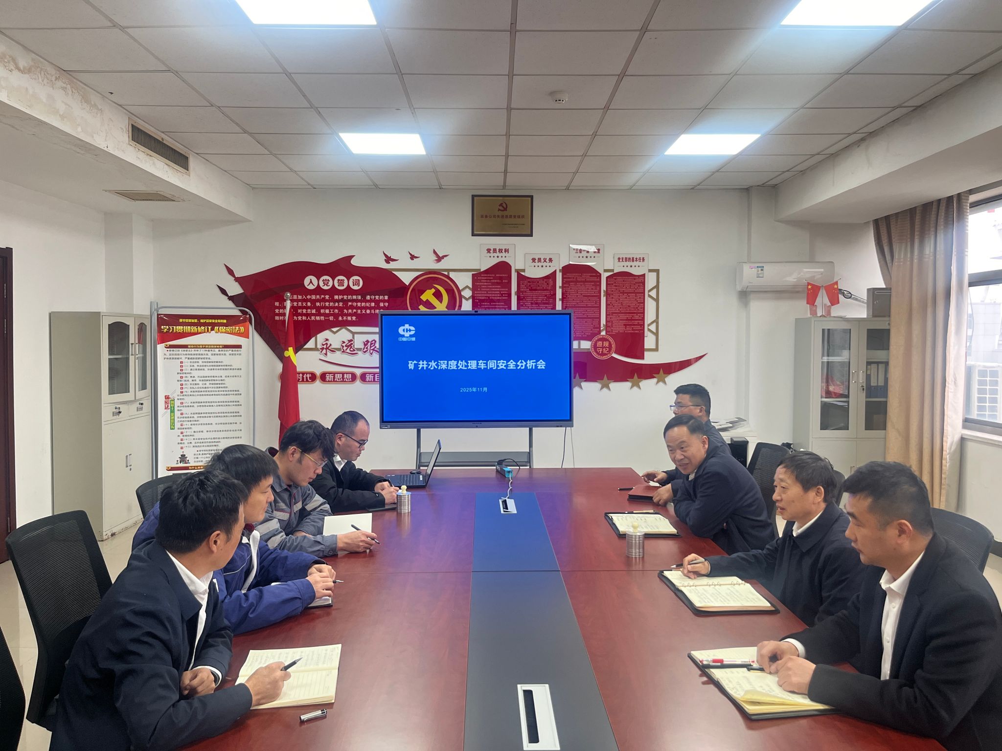 为切实强化矿井水深度处理环节安全管理,防范化解生产运行风险,保障水处理系统稳定高效运转,11月17日,利辛矿业组织召开矿井水深度处理车间安全分析会,机电信息化办公室、车间负责人及运维人员参会,共同为车间安全运行“把脉问诊、对症下药”。