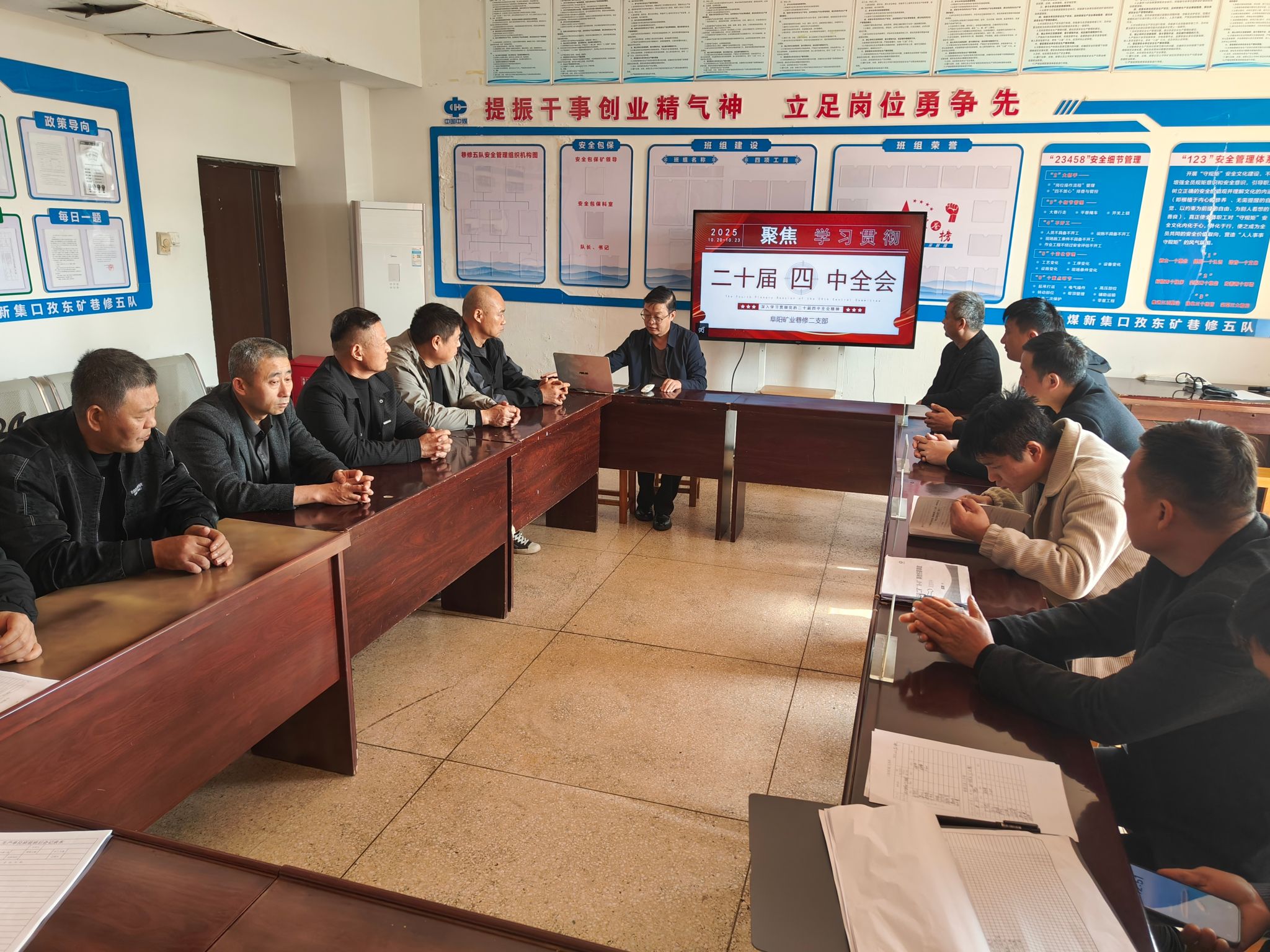 “今天班前会我们重点学全会提出的安全发展要求,结合昨天工作面支护作业,大家先看这个安全案例……”,每天的班前会都成为区队的“微党课”时间。支部书记提前将全会公报要点转化为“安全口诀”“作业指南”,结合当日生产任务解读核心要义。