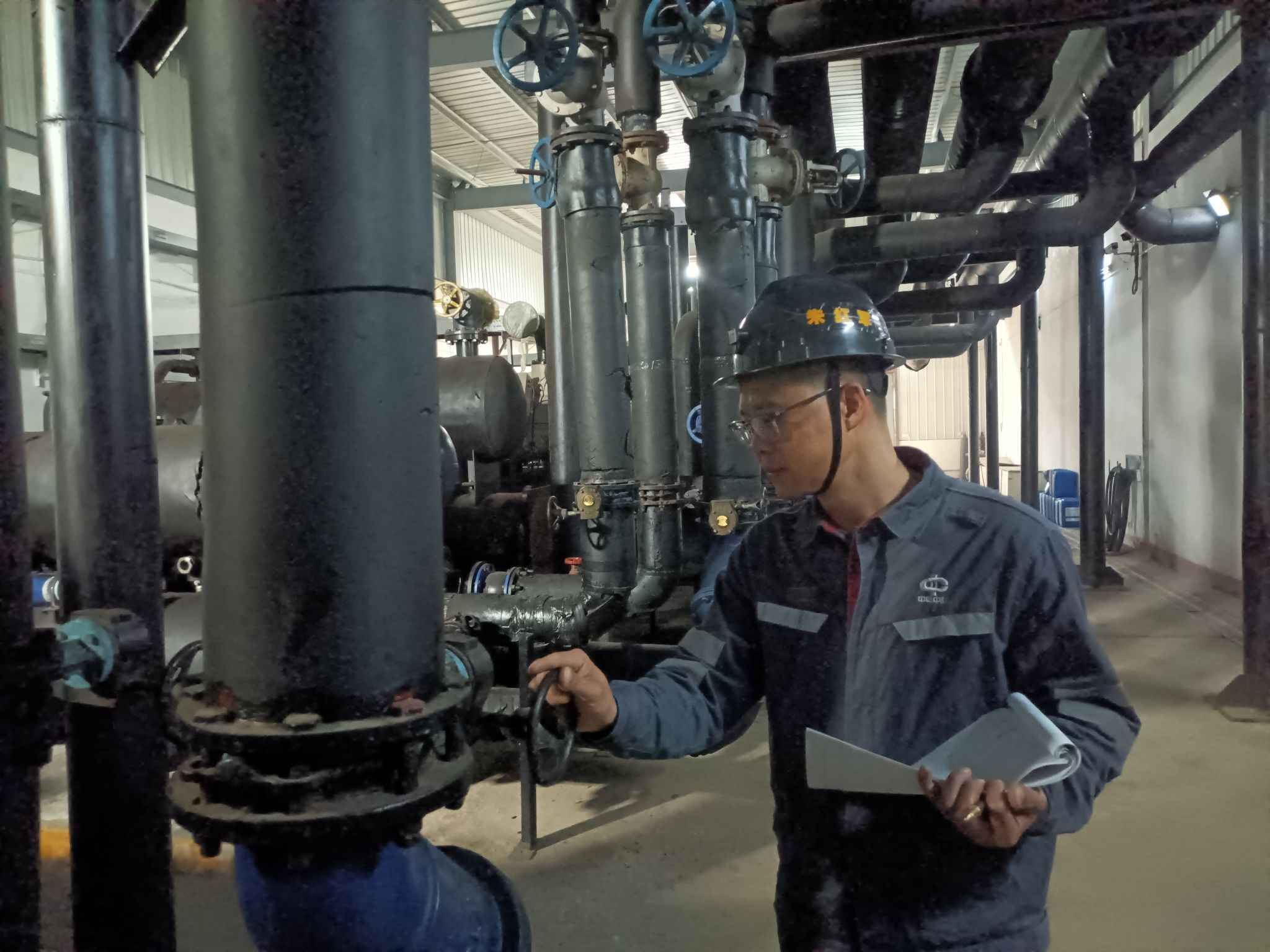 11月17日,阜阳矿业固定队职工朱红军正在余热车间仔细检查供暖设备运行情况。这是该矿务实高效抓好“冬季三防”工作的一个镜头。