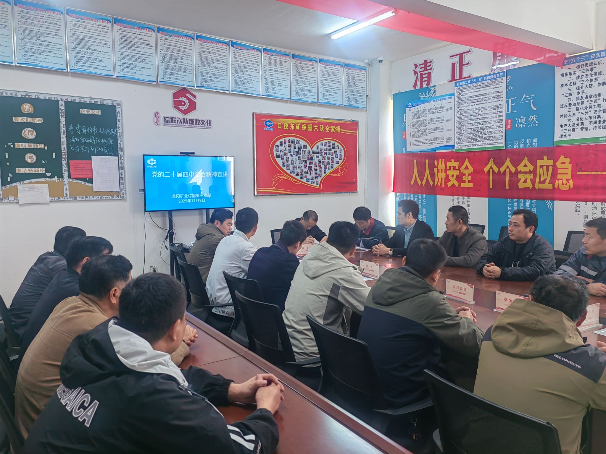近期,阜阳矿业综掘第三党支部将学习贯彻党的二十届四中全会精神作为重要政治任务,依托班前会、班后会等一线学习载体,开展常态化宣讲活动,以学精神、明目标、统思想、聚合力的鲜明导向,为岁末年初攻坚任务注入强劲红色动力。