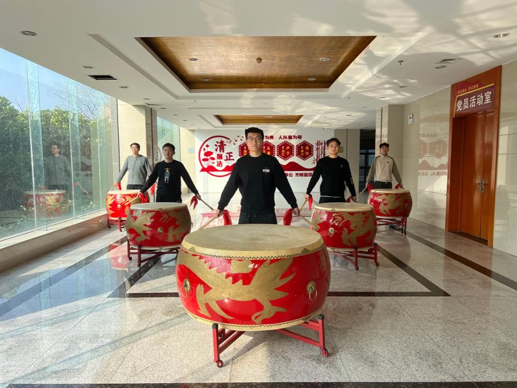 近日,为丰富青年员工业余文化生活,增强文化自信与企业凝聚力,阜阳矿业组织青年大学生开展中国鼓学习体验活动。