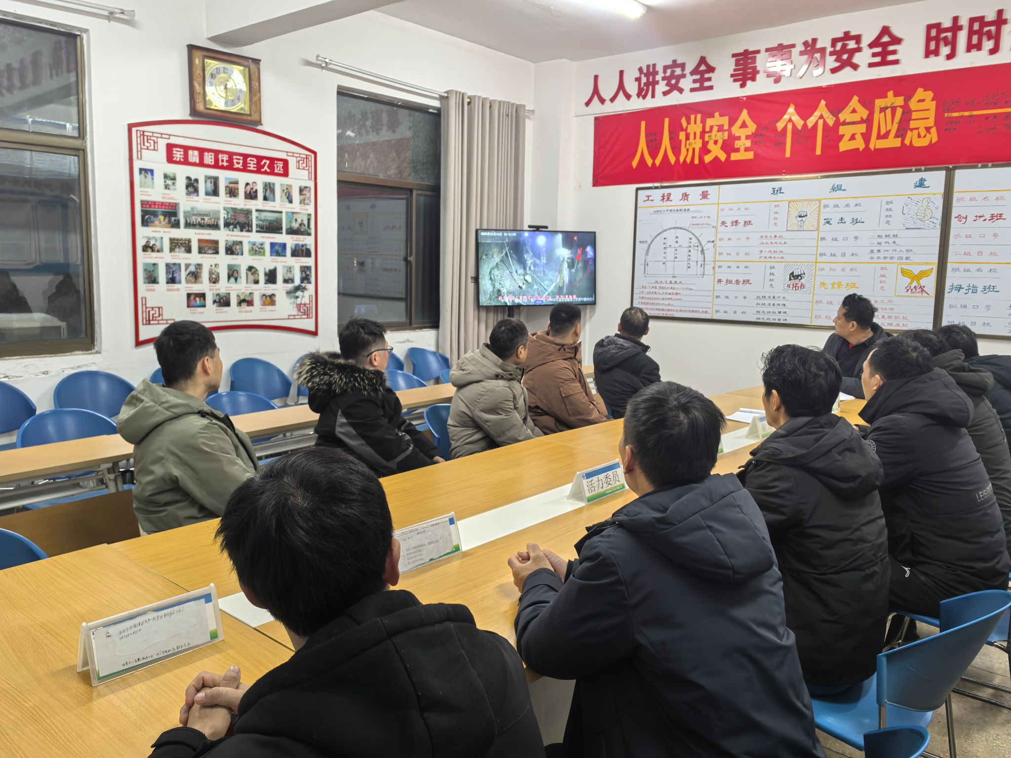 新年伊始、万象更新。1月3日早班,阜阳矿业综掘二队会议室,早班职工正在观看事故警示教育片。这是该矿要求所有区队班前5分钟必看的“规定动作”,其目的就是通过案例触及灵魂,做到生产不忘安全。