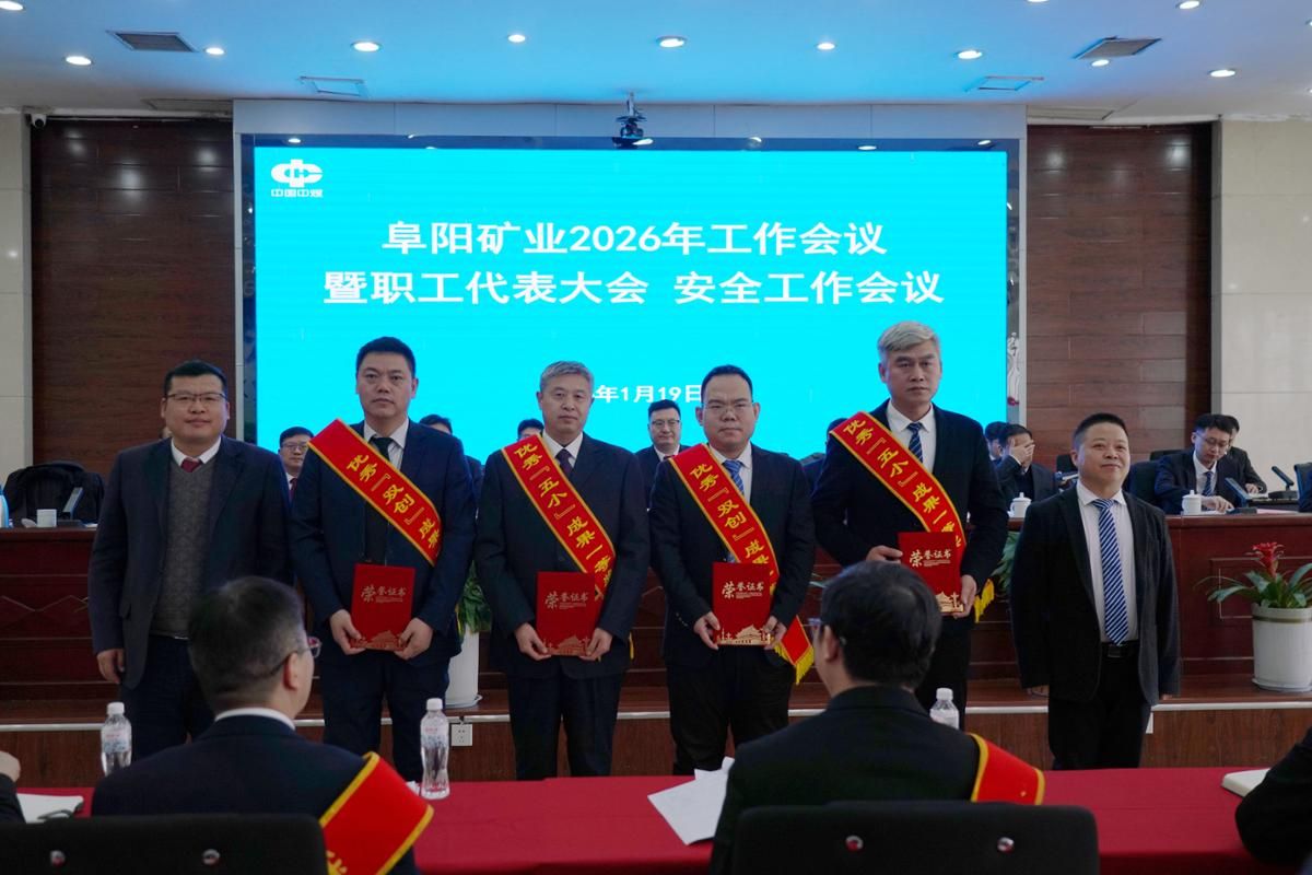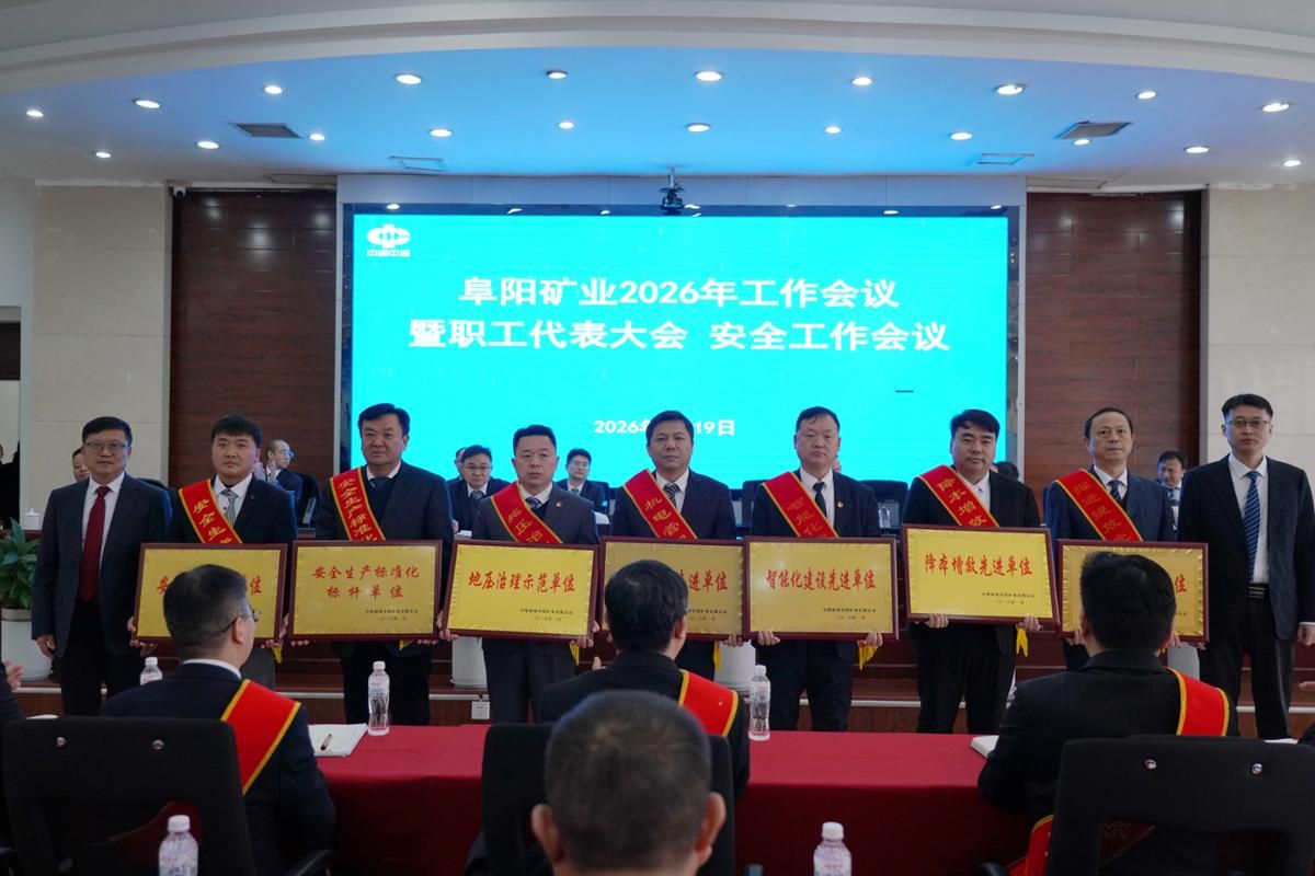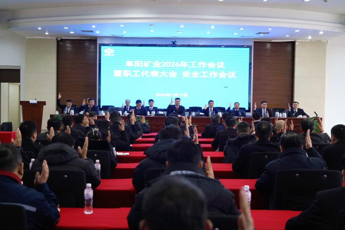 1月19日,阜阳矿业召开2026年工作会议暨职工代表大会、安全工作会议。会议总结回顾矿井2025年各项工作开展情况,分析研判当前形势,部署2026年重点任务。党委副书记、矿长王多浩作阜阳矿业2026年工作报告,党委书记、副矿长苏正江作阜阳矿业2026年党建工作报告,驻阜阳矿业安监处处长金本先作2026年安全工作报告,总工程师、第一副矿长周鹏举主持会议,副矿长朱先博传达贯彻集团和公司2026年工作会议精神,总会计师苏关振通报2025年度干部考核结果并宣读表彰先进集体和先进个人的决定,工会主席、副矿长吴大斌主持职工代表大会。