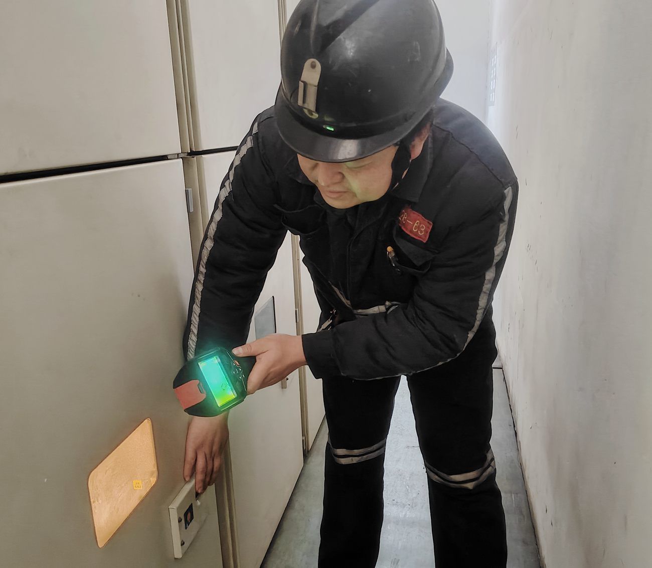 近日,阜阳矿业固定队电工李楠桦在抽风机房认真细致地检查电器设备电缆接头温度,防止凝露现象。这是该矿机电口做实做细冬季“三防”工作的一个镜头。