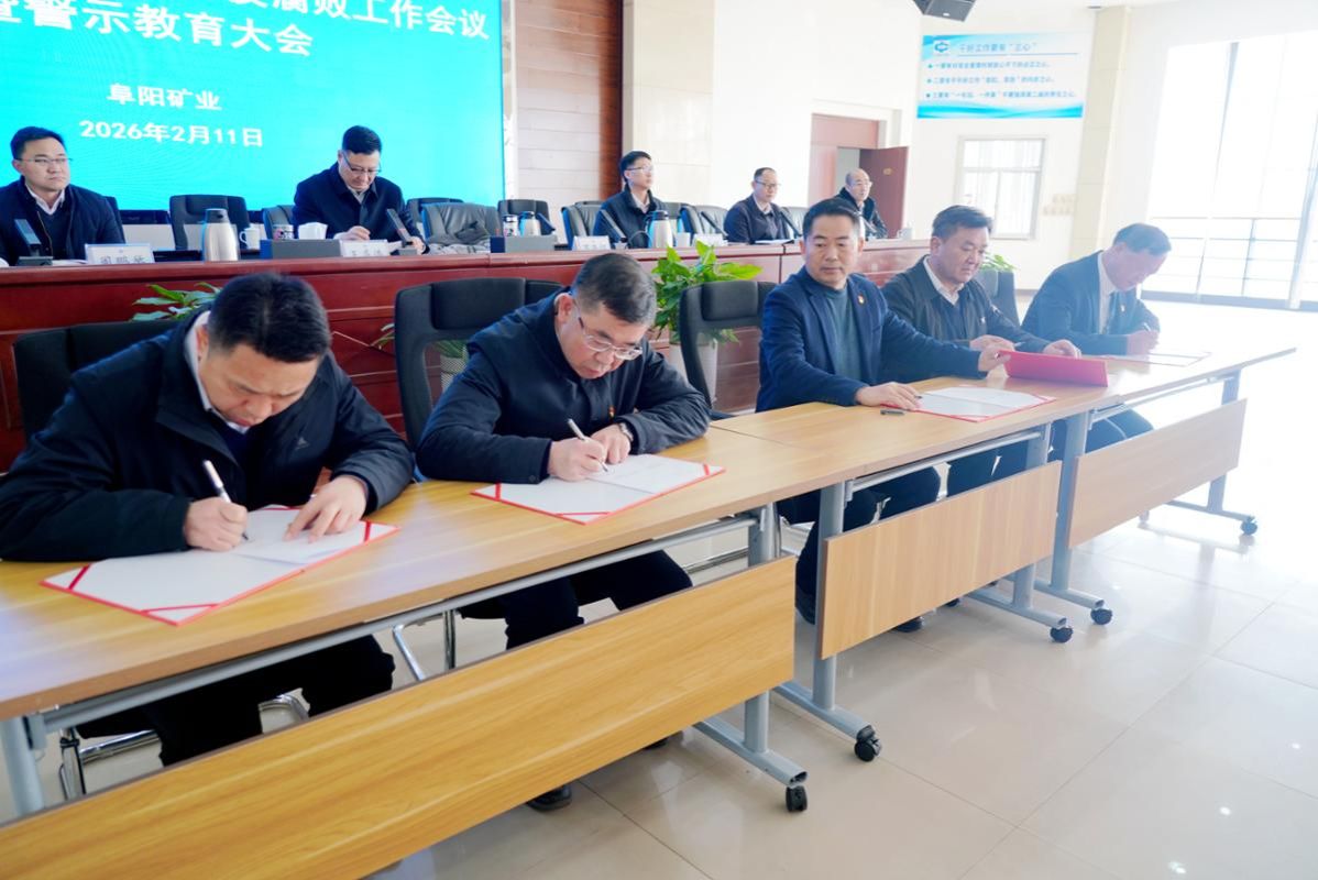 2月11日,阜阳矿业召开2026年党风廉政建设和反腐败工作会议暨警示教育大会。党委副书记、矿长王多浩主持会议。会议传达中国中煤及新集公司党风廉政建设和反腐败工作会议暨警示教育大会精神,通报违纪违法典型案件,开展警示教育,系统总结2025年工作,深刻分析当前形势与存在问题,并对2026年重点任务作出具体安排。会上,党委书记、副矿长苏正江与基层党支部书记代表签订了《2026年度党风廉政建设责任书》,并作总结讲话。