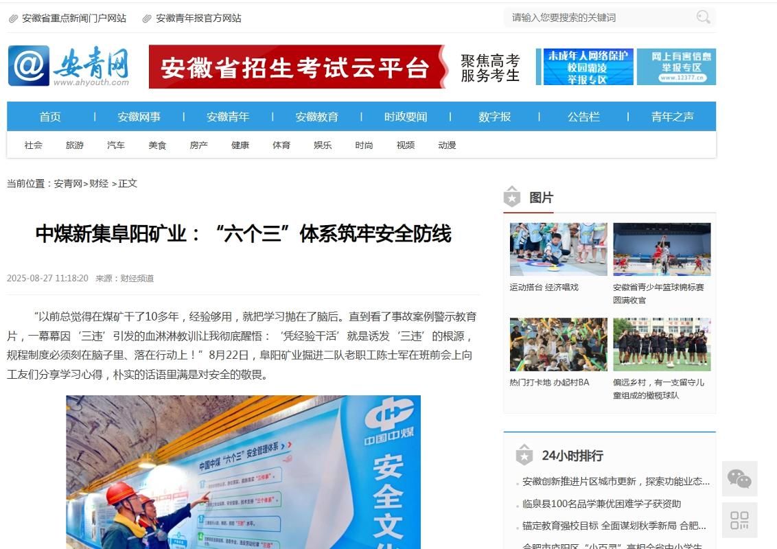 如今,走进阜阳矿业,从矿领导到一线员工,从地面办公楼到井下作业面,“六个三”安全管理体系已融入安全生产的每一个环节。“下一步,我们会继续深化‘六个三’体系落实,以更实的举措、更严的标准、更细的监督,守住安全底线,为矿井高质量发展保驾护航!”驻该矿安监处处长金本先说。