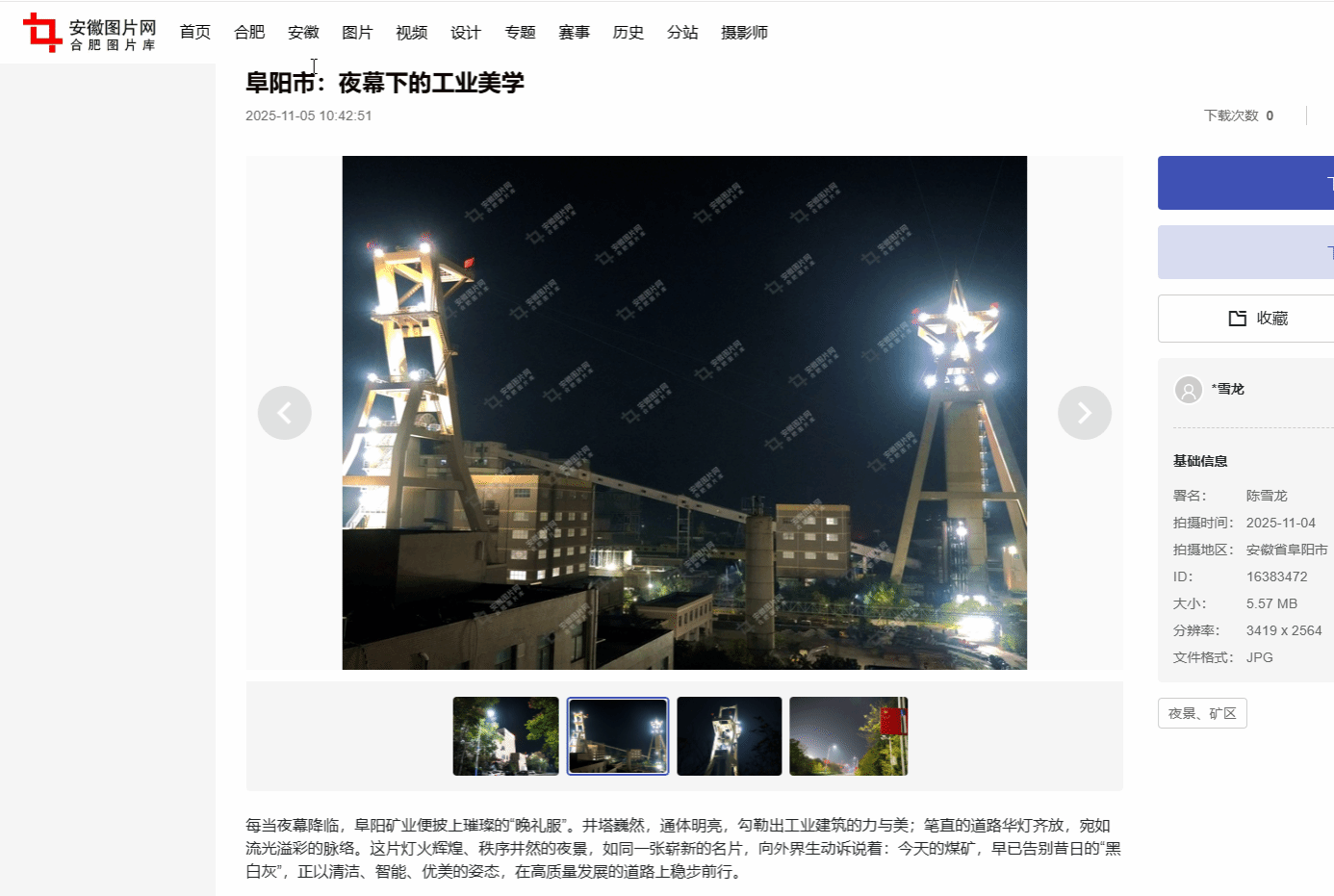 每当夜幕降临,阜阳矿业便披上璀璨的“晚礼服”。井塔巍然,通体明亮,勾勒出工业建筑的力与美;笔直的道路华灯齐放,宛如流光溢彩的脉络。这片灯火辉煌、秩序井然的夜景,如同一张崭新的名片,向外界生动诉说着:今天的煤矿,早已告别昔日的“黑白灰”,正以清洁、智能、优美的姿态,在高质量发展的道路上稳步前行。