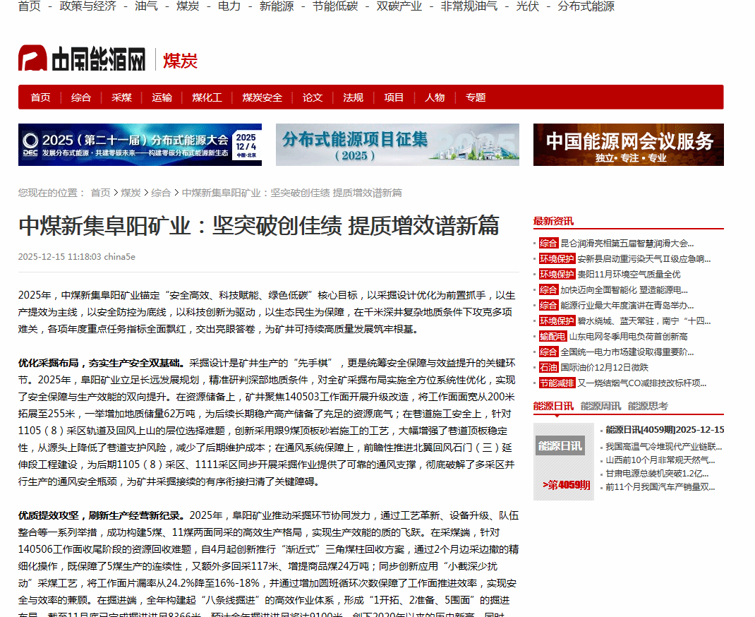 2025年,中煤新集阜阳矿业锚定“安全高效、科技赋能、绿色低碳”核心目标,以采掘设计优化为前置抓手,以生产提效为主线,以安全防控为底线,以科技创新为驱动,以生态民生为保障,在千米深井复杂地质条件下攻克多项难关,各项年度重点任务指标全面飘红,交出亮眼答卷,为矿井可持续高质量发展筑牢根基。
