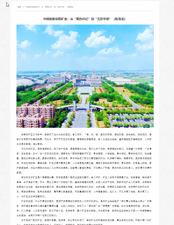 立于焕然一新的矿区,我满怀自豪。我深信,在公司的引领下,阜阳矿业的环境将愈发优美,事业将愈加兴旺。而我们每一位矿业人,也定将在这片希望的土地上,不忘初心,砥砺前行,用双手创造更灿烂的明天。
