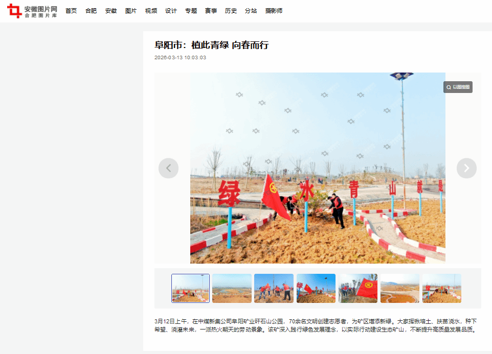 3月12日上午,在中煤新集公司阜阳矿业矸石山公园,70余名文明创建志愿者,为矿区增添新绿。大家挥锹培土、扶苗浇水,种下希望、浇灌未来,一派热火朝天的劳动景象。该矿深入践行绿色发展理念,以实际行动建设生态矿山,不断提升高质量发展品质。