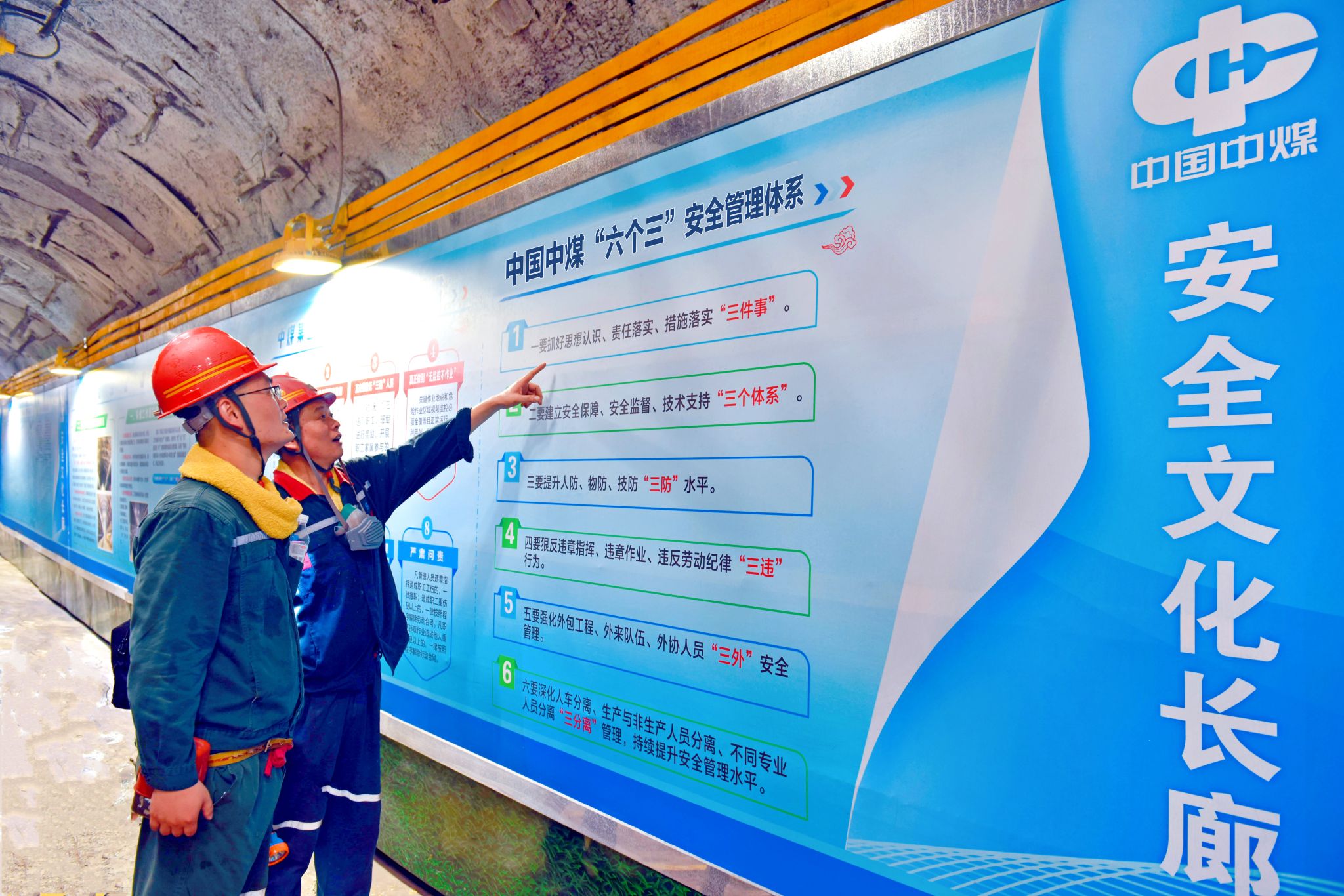 地面广播播报体系知识,电子屏播放安全标语,井下巷道里,“六个三”专题展板、安全文化墙随处可见——从地面到井下,从办公室到作业面,该矿把学习场景延伸到安全生产“最后一米”,让员工在耳濡目染中把安全理念刻进“骨子里”。