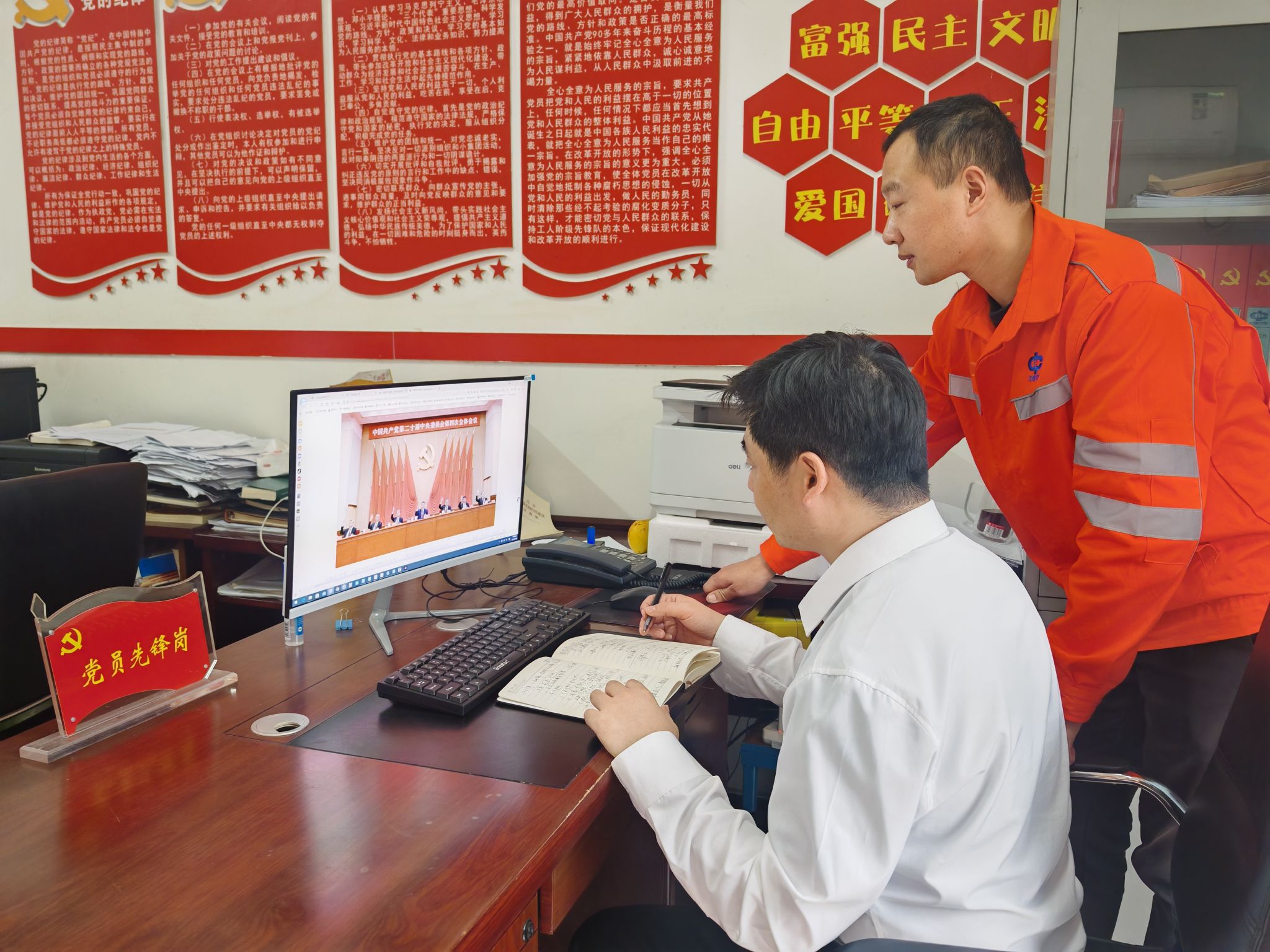 为深入学习宣传贯彻党的二十届中全会精神,进一步把思想和行动统一到全会精神上来11月6日,驻利辛矿业安监处党支部副书记组织党员职工学习党的二十届中全会精神。旨在深化党员思想认识、提高政治站位,推动党的二十届四中全会精神落地生根。