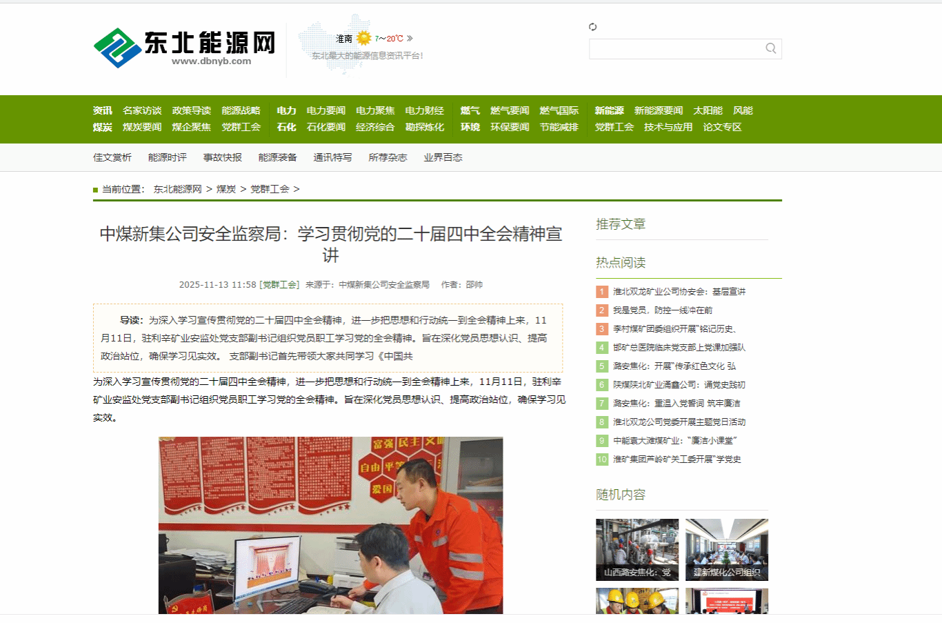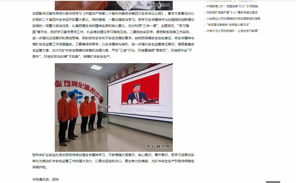 《东北能源网》中煤新集公司安全监察局:学习贯彻党的二十届四中全会精神宣讲