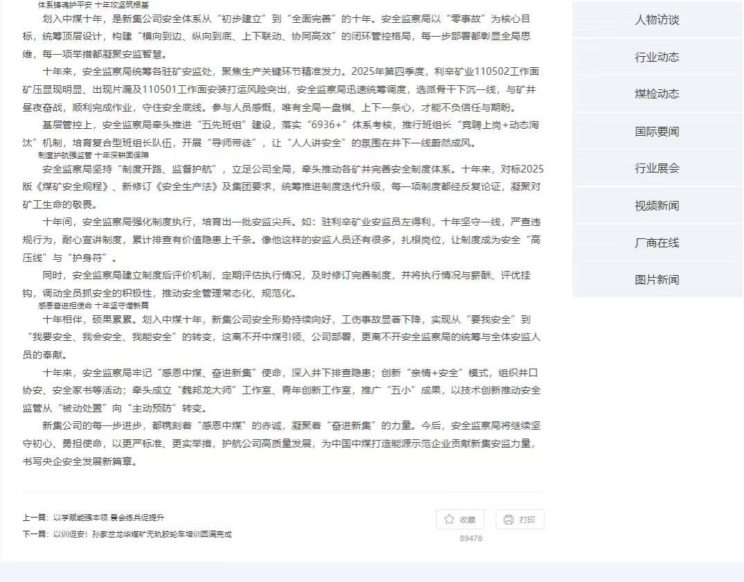 十年来,安全监察局统筹各驻矿安监处,聚焦生产关键环节精准发力。2025年第四季度,利辛矿业110502工作面矿压显现明显、出现局部片漏及110501工作面打运、安装打运风险突出,安全监察局迅速统筹调度,选派骨干下沉一线,与矿井昼夜奋战,顺利完成作业,守住安全底线。参与人员感慨,唯有全局一盘棋、上下一条心,才能不负信任与期盼。
