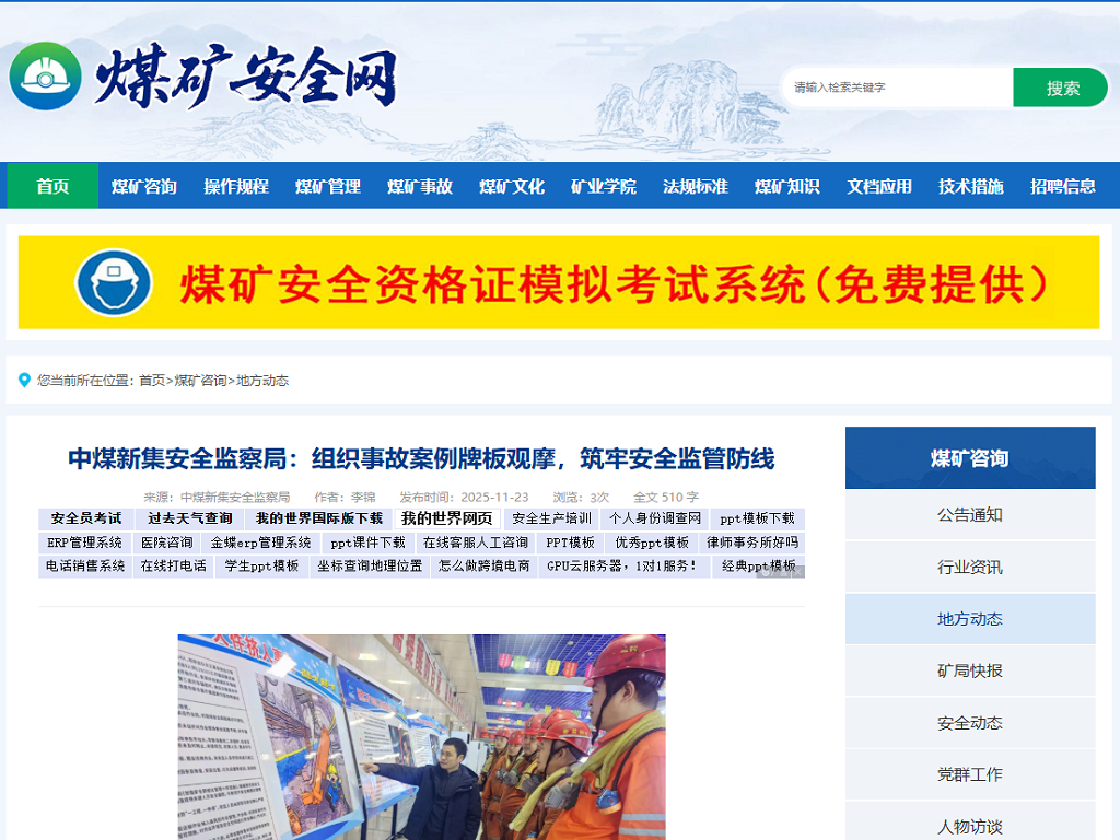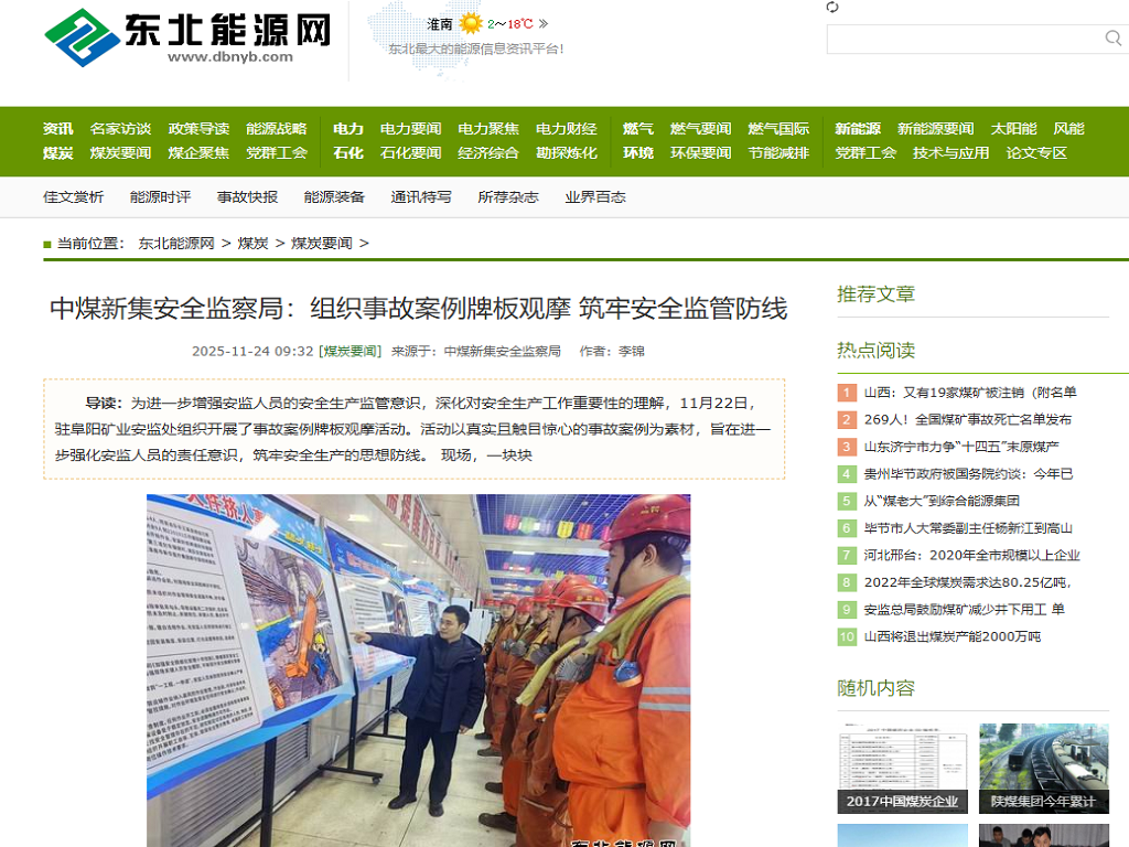 《煤矿安全网》《东北能源网》《企业报道网》中煤新集安全监察局:组织事故案例牌板观摩,筑牢安全监管防线