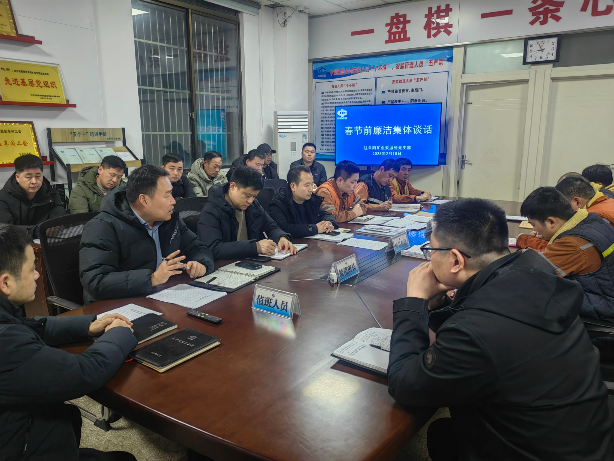 2月11,驻阜阳矿业安监处党支部组织开展节前廉洁集体谈话活动,旨在进一步增强安监人员廉洁自律意识,营造风清气正的节日氛围。
