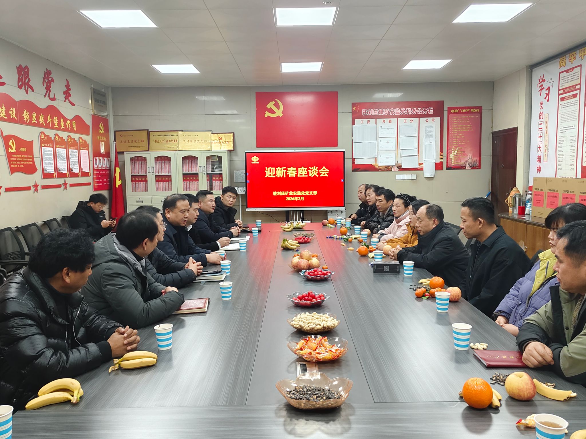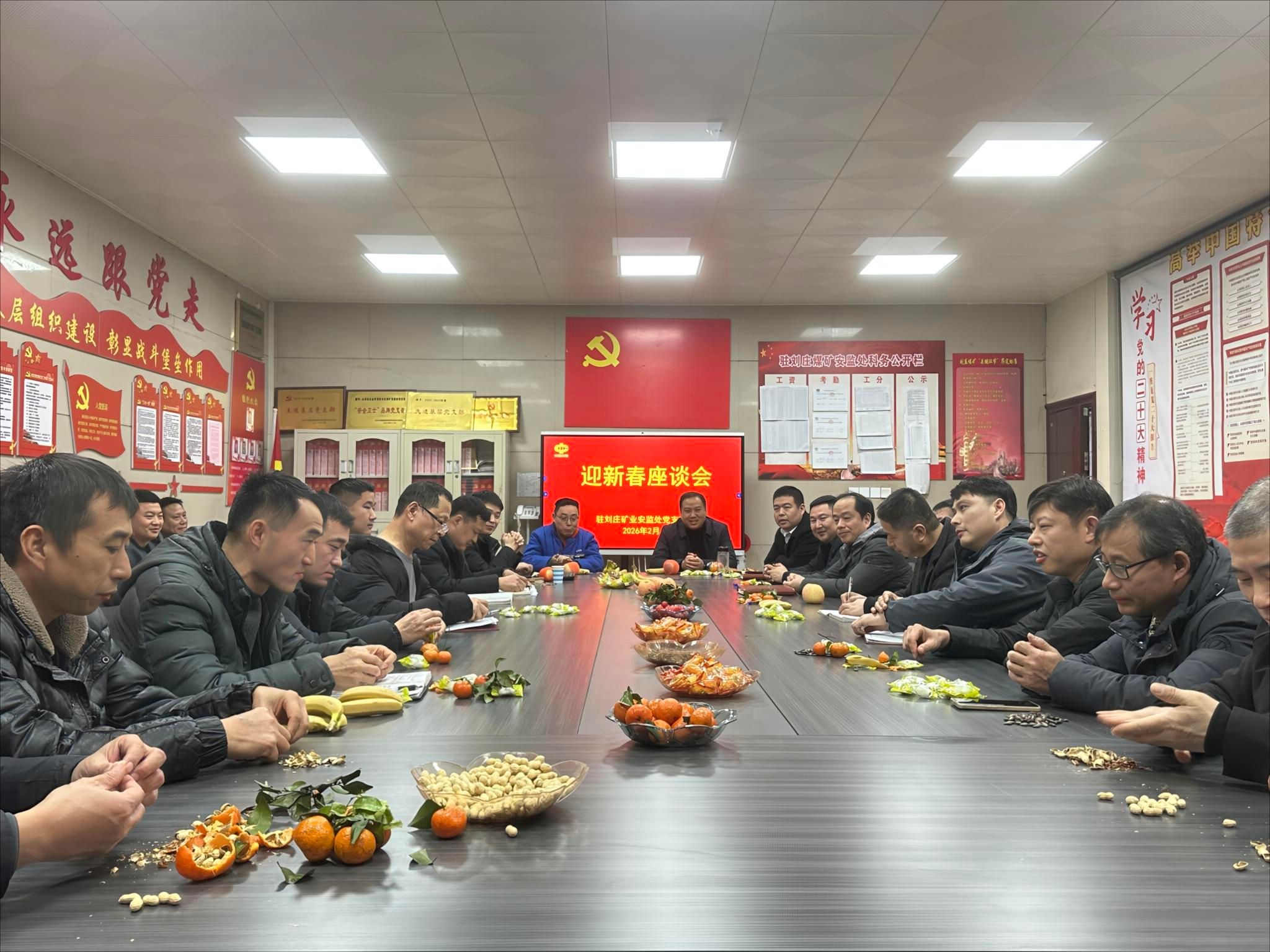 新春甫至,暖意盈怀。2月11日下午,安全监察局驻刘庄矿业安监处在党员活动室召开迎新春座谈会。安监处长主持会议,科管技人员、职工家属、不当班安监员欢聚一堂,共话安全、同叙家常、共谋发展。