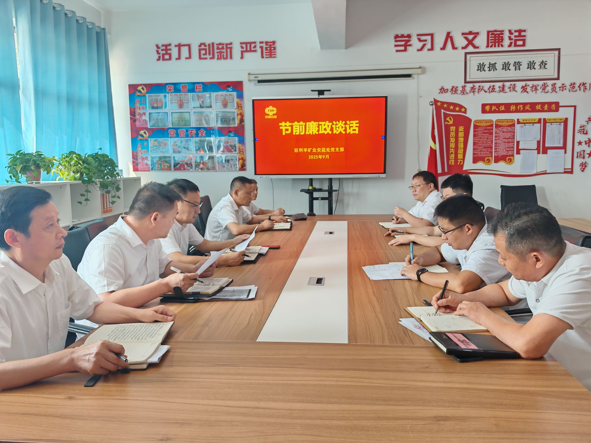 “中秋、国庆”将至,为持续做好中央八项规定精神,营造风清气正的节日氛围,916日,安监局驻利辛矿业安监处党支部组织开展“中秋、国庆”节前廉政谈话,筑牢廉政“防火墙”。管技人员及大班人员参加。