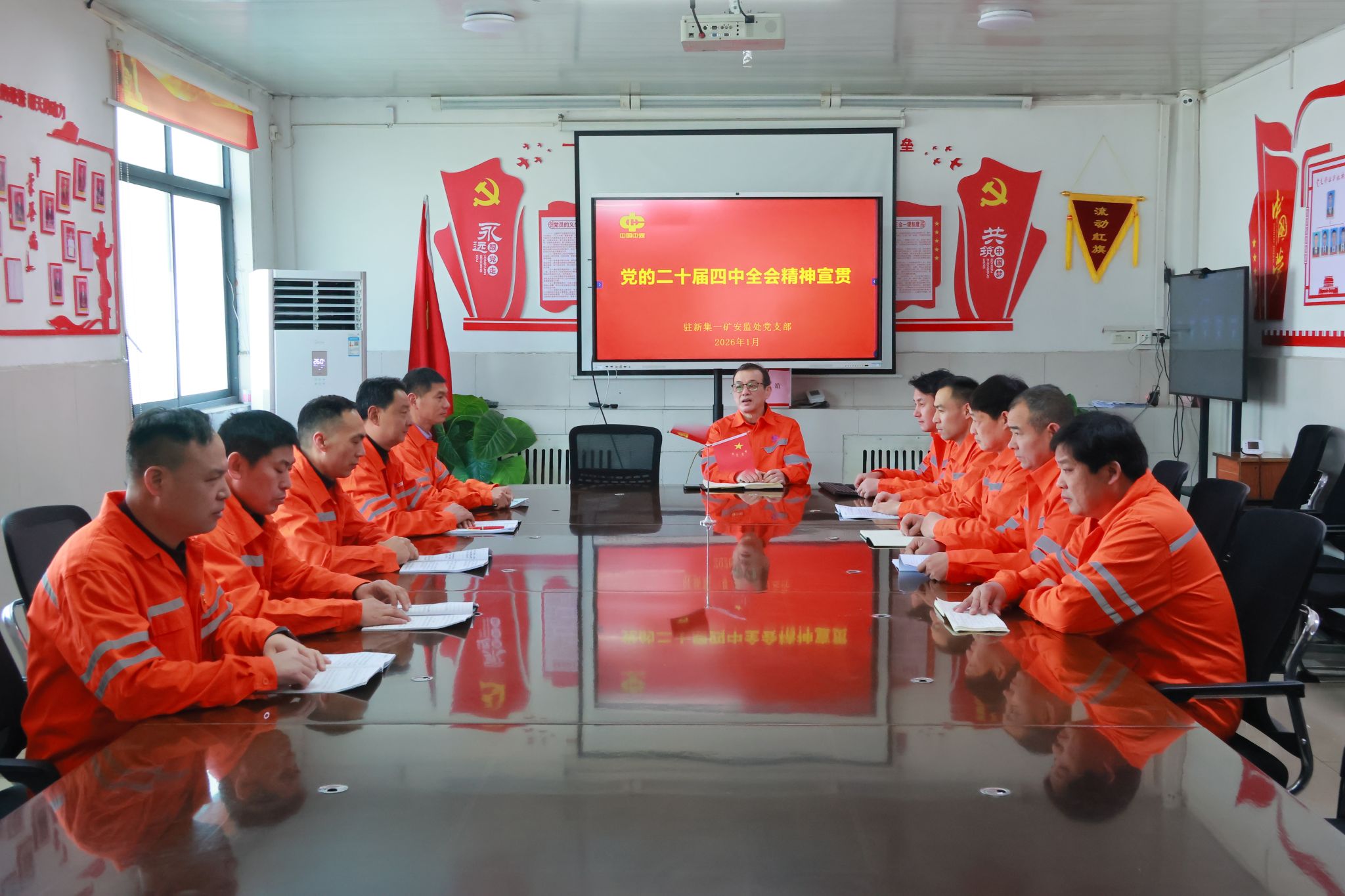 党的二十届四中全会对统筹发展和安全作出重大部署,为矿山安全生产工作指明了前进方向、提供了根本遵循。1月27日中班,安全监察局驻新集一矿安监处党支部组织开展宣贯全会精神专题会,紧扣安监岗位核心职责,把全会精神学习成果与安全生产监管工作深度融合,以“党建+安全”为抓手,引领全体安监人员深学细悟、实干笃行,将理论学习成效转化为守牢安全底线、筑牢安全监管防线的实际行动,为矿井安全生产形势持续稳定保驾护航。