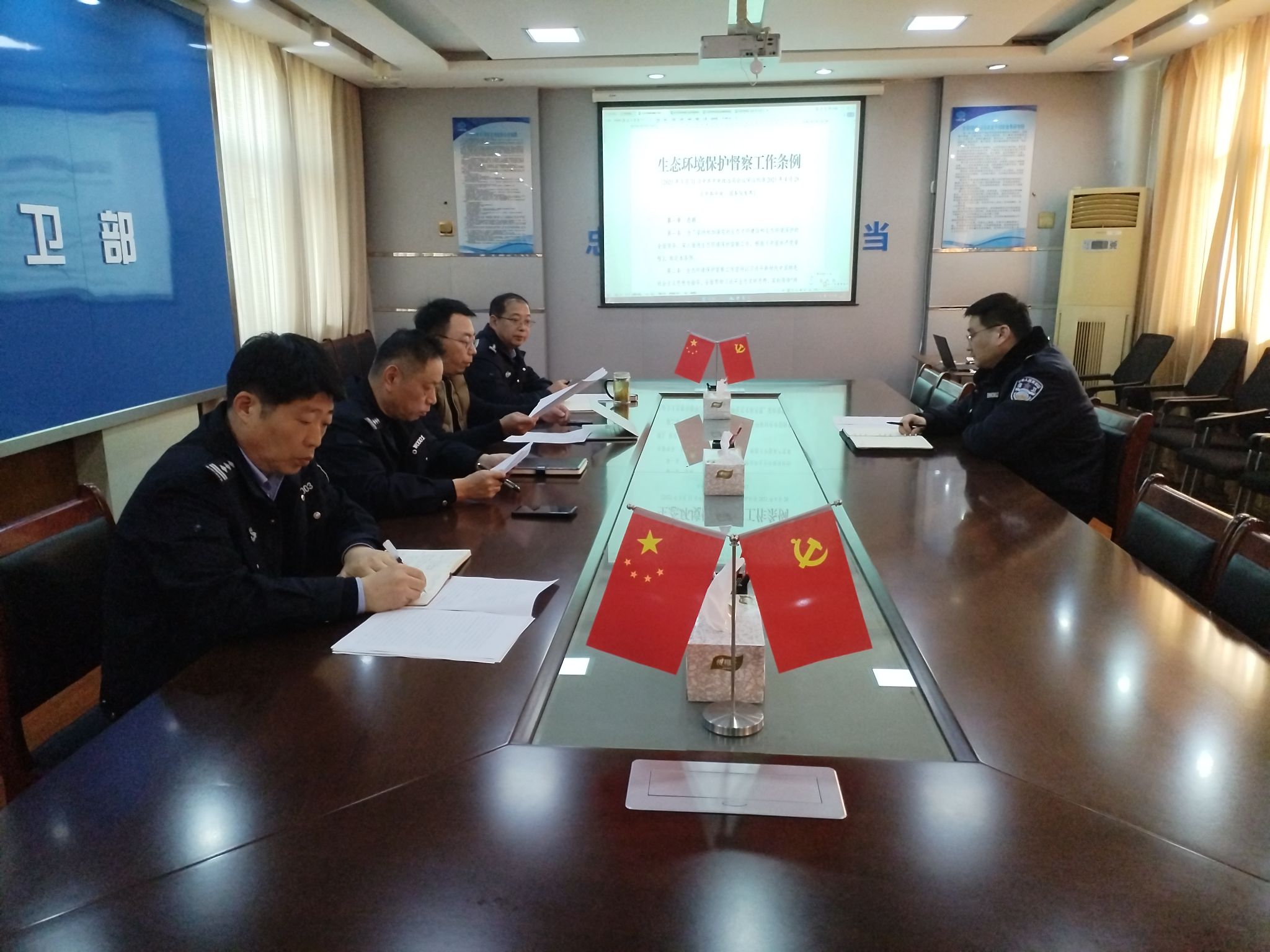 为深入贯彻习近平生态文明思想,切实把生态环境保护督察工作要求落到实处,近日,保卫部领导班子召开专题学习会,集中研学《生态环境保护督察工作条例》,传达学习中央第八生态环境保护督察组进驻中国中煤动员会领导讲话精神,研究部署贯彻落实举措。保卫部党委书记主持会议并讲话,领导班子全体成员参加学习。