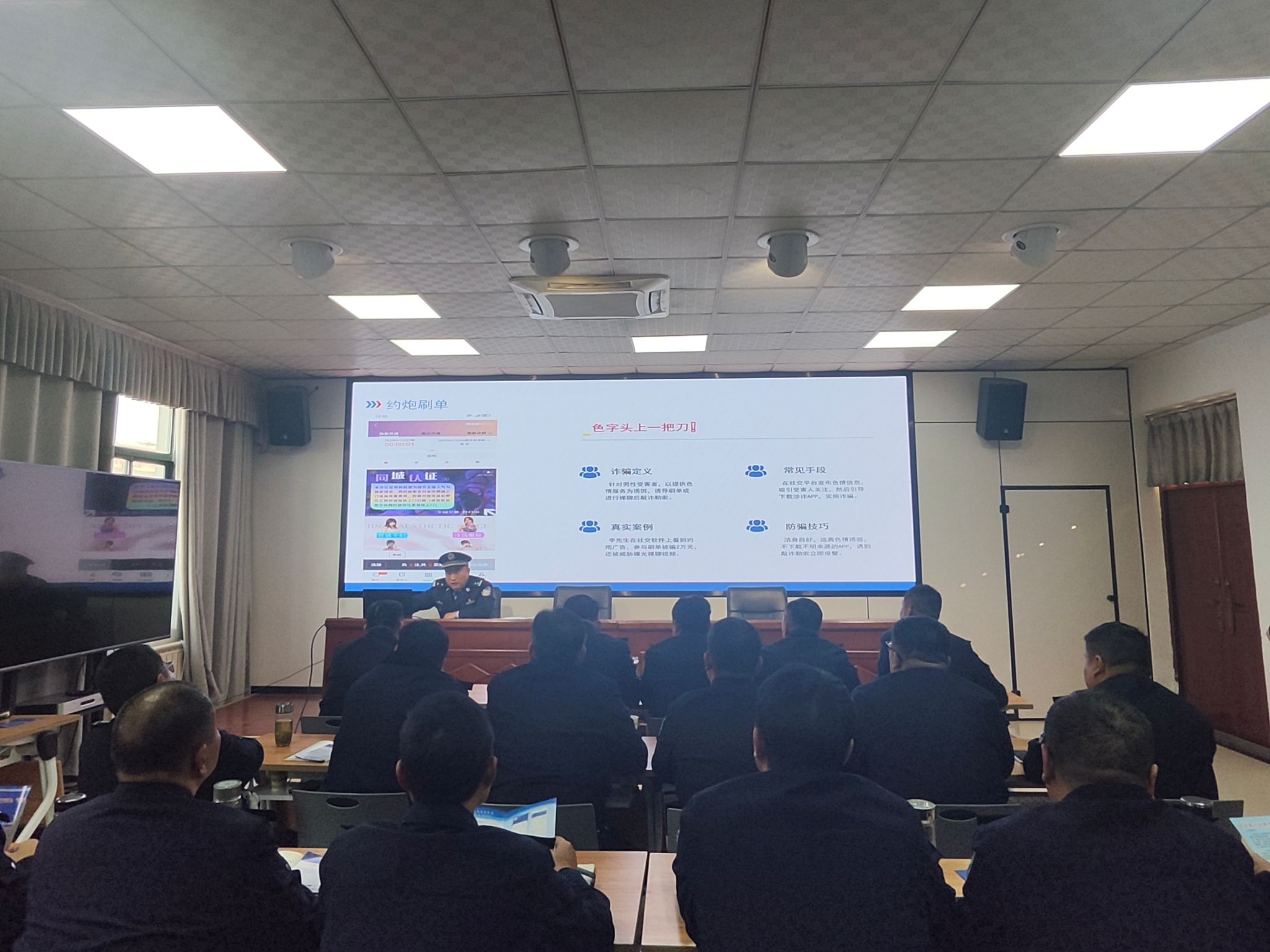 精准破题:聚焦痛点定制培训“内容”。“保卫队员是辖区安全‘前哨’,既要自身防诈,更要当好群众反诈宣传员。”新集派出所教导员在培训开篇点明核心,此次培训摒弃“大水漫灌”,紧扣安保工作实际,聚焦两大重点:新型电诈类型识别与基层宣传实操。