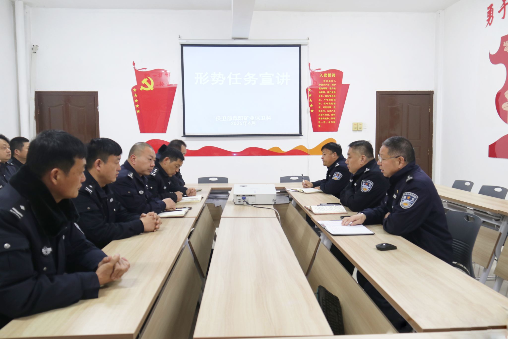近日,阜阳矿业保卫科组织全体人员召开专题学习会,深入学习贯彻公司一季度经济运行分析会议精神,同步开展形势任务宣讲,推动会议精神落地生根、见行见效。会上,科室负责人带领全体人员原原本本学习了公司一季度经济运行分析报告,结合保卫科核心职能,重点围绕矿井治安防控、消防安全、应急处突、队伍建设等工作,对照公司经济运行指标要求,梳理短板弱项,细化攻坚举措,引导全体人员深刻认识当前发展形势,切实增强责任感、使命感和紧迫感。