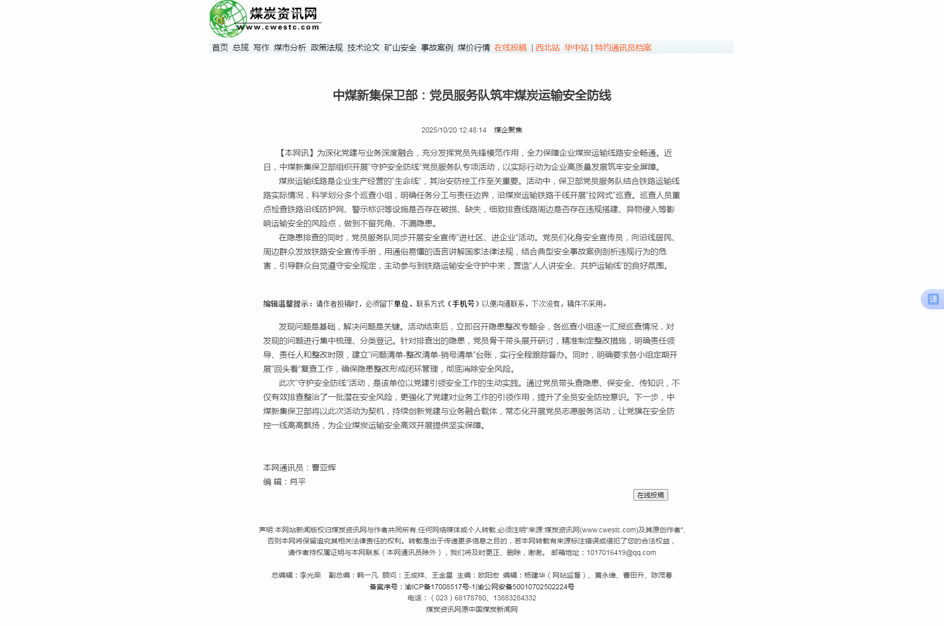 为深化党建与业务深度融合,充分发挥党员先锋模范作用,全力保障企业煤炭运输线路安全畅通。近日,中煤新集保卫部组织开展“守护安全防线”党员服务队专项活动,以实际行动为企业高质量发展筑牢安全屏障。