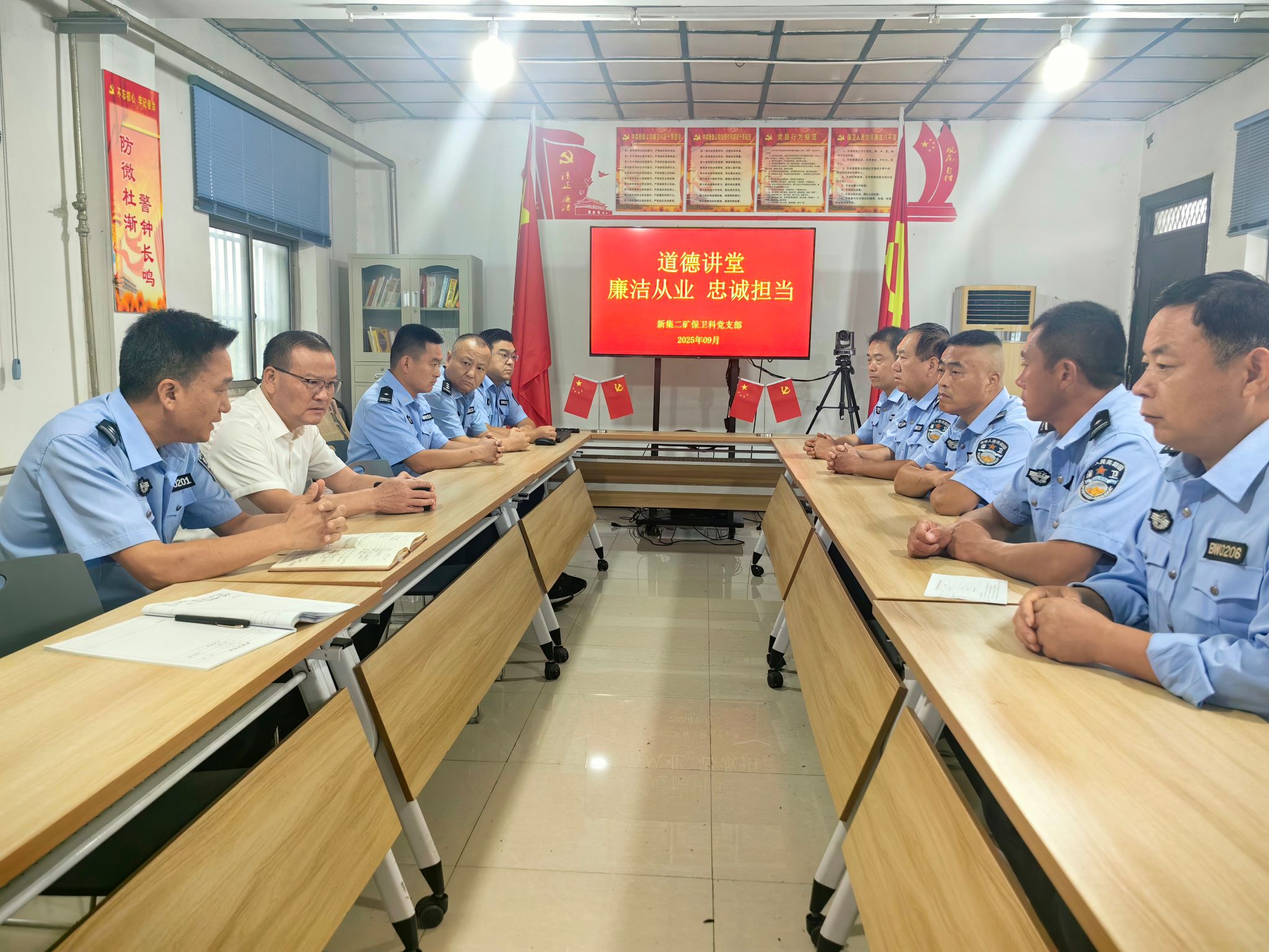近日,新集二矿保卫科党支部组织科队党员干部职工开展“筑牢廉洁根基、践行忠诚担当”道德讲堂活动,活动邀请分管矿领导参加。