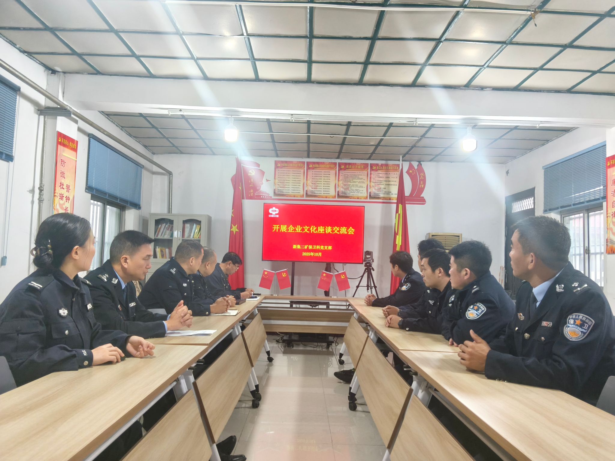 10月16日,新集二矿保卫科党支部组织全体党员及骨干职工开展企业文化宣贯交流座谈会,旨在推动企业文化入脑入心,转化为安保工作实效。