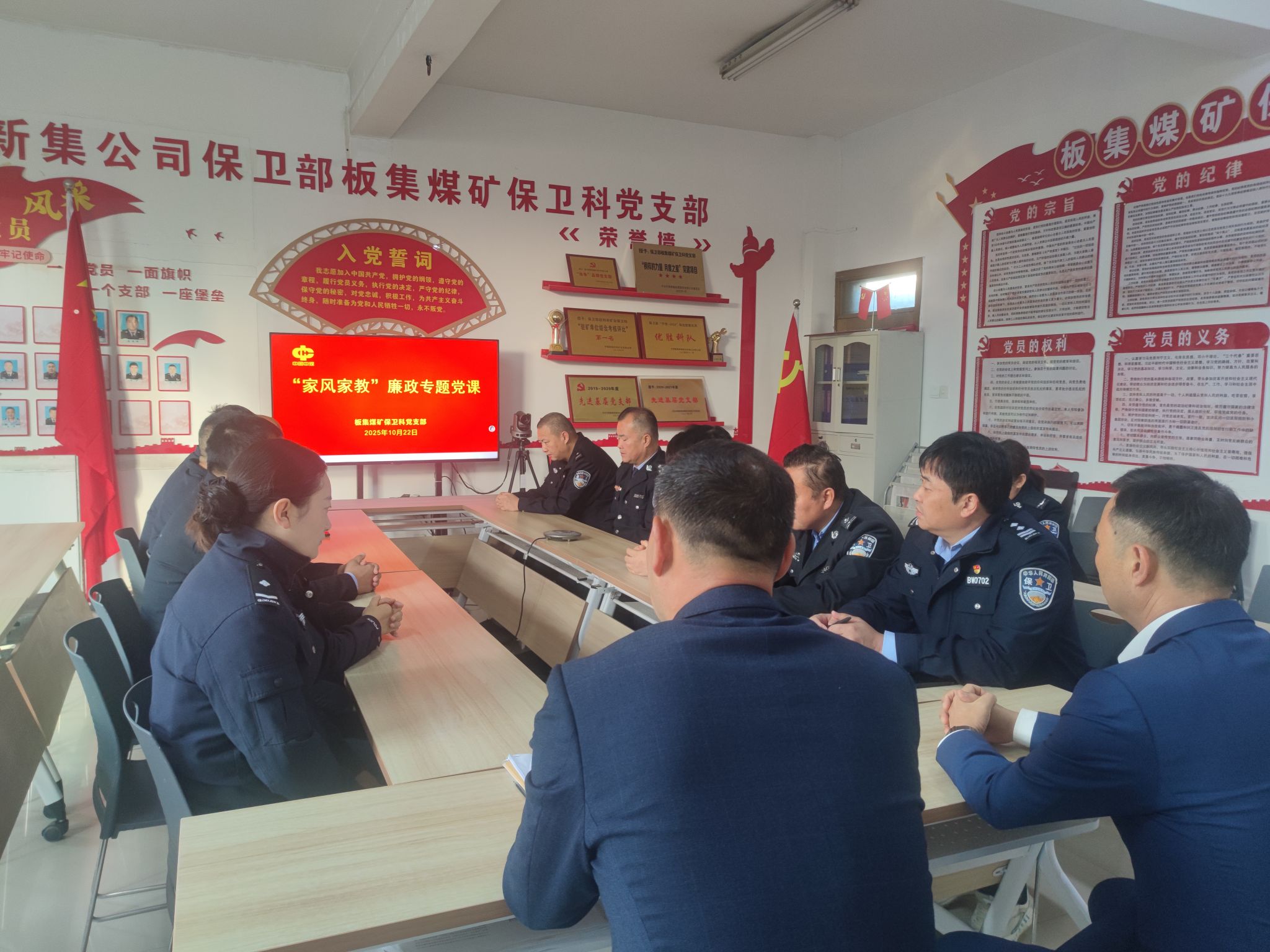 近日,板集煤矿保卫科党支部以“红色党风传承好家风筑牢廉洁墙”为主题,组织开展“家风家教”廉政专题党课,全体党员及关键岗位人员参加学习。