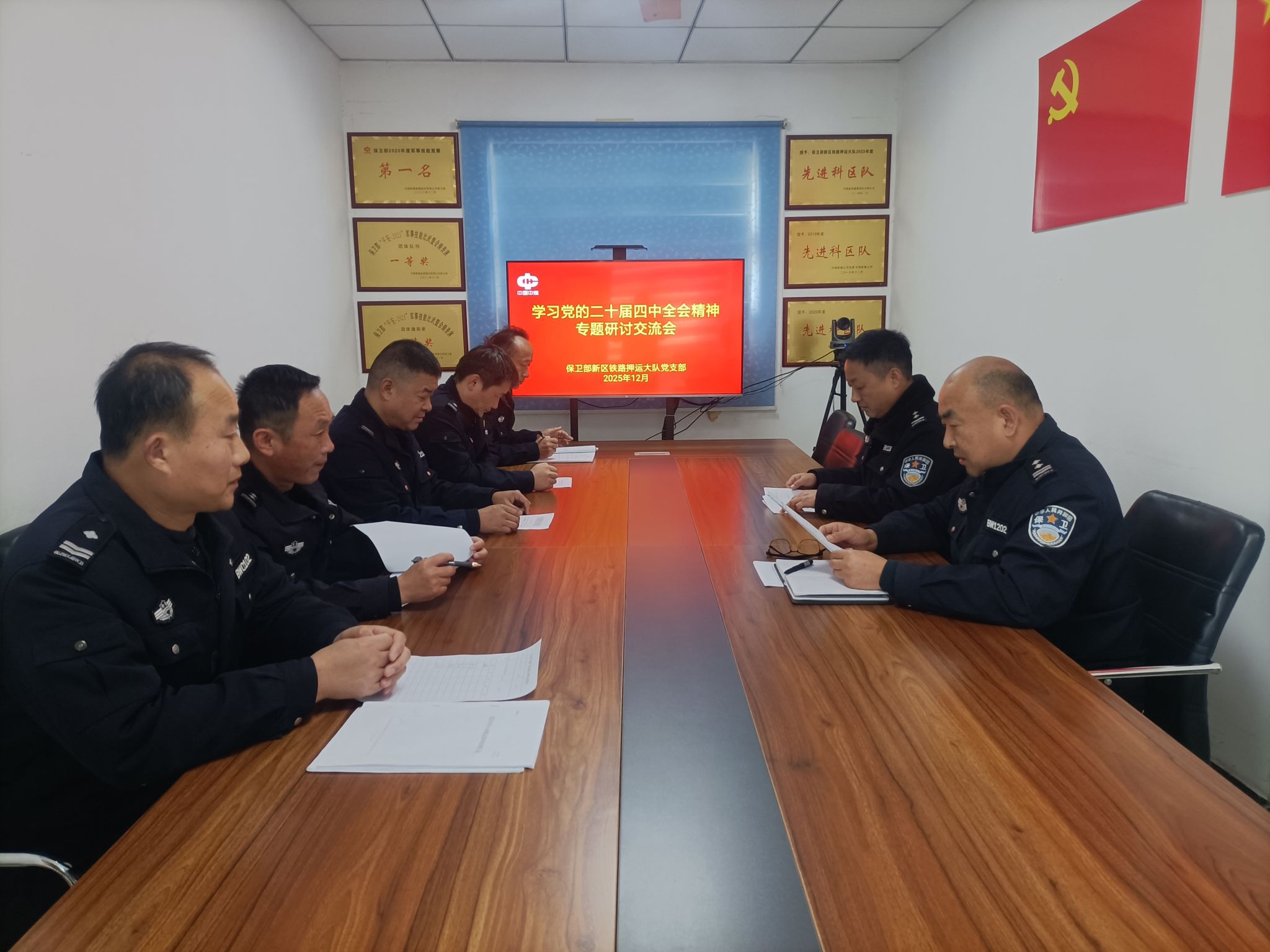 近日,保卫部新区铁路押运大队党支部组织召开专题研讨会,集中学习贯彻党的二十届四中全会精神,推动全会精神与铁路押运安全保卫工作深度融合,切实把学习成果转化为履职尽责的强大动力。