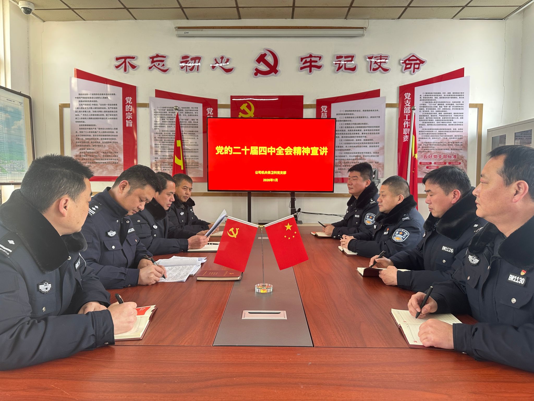 会上,党支部书记带领全体党员学习了《中国共产党第二十届中央委员会第四次全体会议公报》《中共中央关于制定国民经济和社会发展第十五个五年规划的建议》。要求全体党员要将思想和行动统一到全会精神上来,深刻领悟“两个确立”的决定性意义,增强“四个意识”、坚定“四个自信”、做到“两个维护”,将学习全会精神与推动安全保卫工作结合起来。