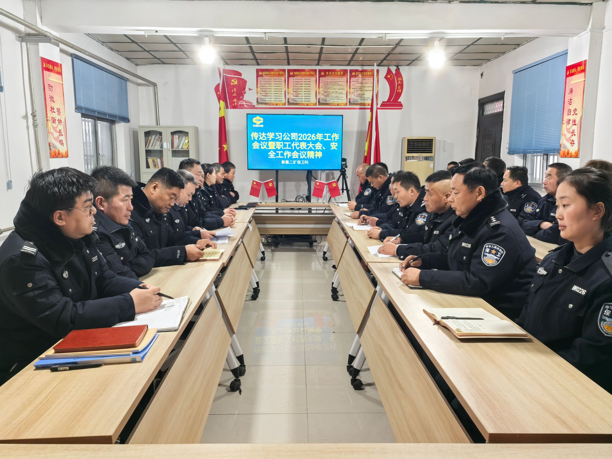 为深入学习贯彻公司2026年工作会议暨职工代表大会、安全工作会议精神,把思想和行动统一到公司决策部署上来,近日,新集二矿保卫科党支部召开专题学习会,结合科队工作实际细化落实举措,以实干担当守护矿区平安稳定。