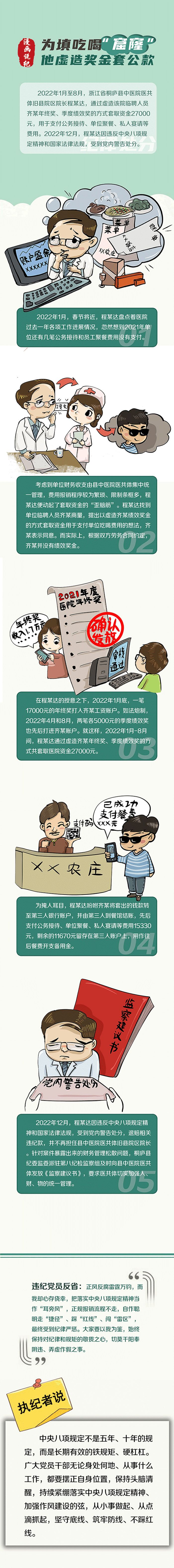 漫画说纪丨为填吃喝“窟窿”他虚造奖金套公款