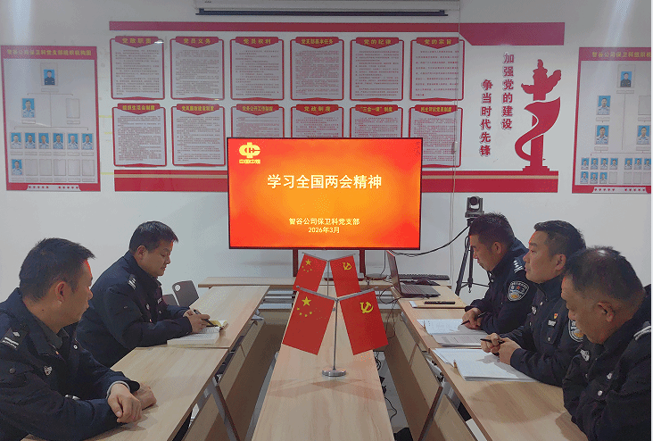 3月17日,智谷公司保卫科党支部组织党员干部职工在党员活动室开展学习贯彻全国两会精神专题学习活动,以学促干、以干践学,推动全国两会精神在安保一线落地见效,筑牢辖区安全防线。