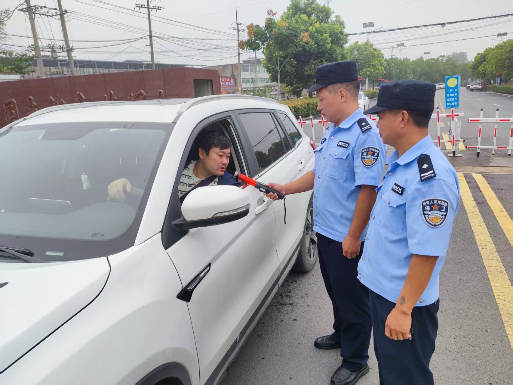 在一道门的出入口,该科保卫队员一是严格执行值班执勤制度。他们对进出矿区的车辆进行细致检查,认真查看后备箱内的物品,不放过任何一个安全隐患。“请您配合检查”, 这是他们在节日期间说得最多的一句话。每一次检查,都凝聚着他们对矿区安全的高度负责,确保没有违禁物品被带入矿区,也防止矿区内的重要物资被违规带出。二是为切实强化矿区交通安全管理,防范酒后驾车引发安全事故,保卫员手持专业酒精检测仪,认真对每一位驾驶员进行检测,仔细查看检测结果,确保无酒后驾车情况发生。这一举措,既是对驾驶员生命安全的负责,也是对矿区生产安全的有力保障,为矿区营造了安全、有序的交通环境。同时,各门岗还加强了对进出人员的管理。他们仔细核对人员身份,询问来访目的,严格按照矿区的规定进行登记。对于不熟悉矿区情况的外来人员,保卫人员耐心引导,详细告知矿区内的注意事项,既保证了矿区正常的生产秩序,又为外来人员提供了便利。
