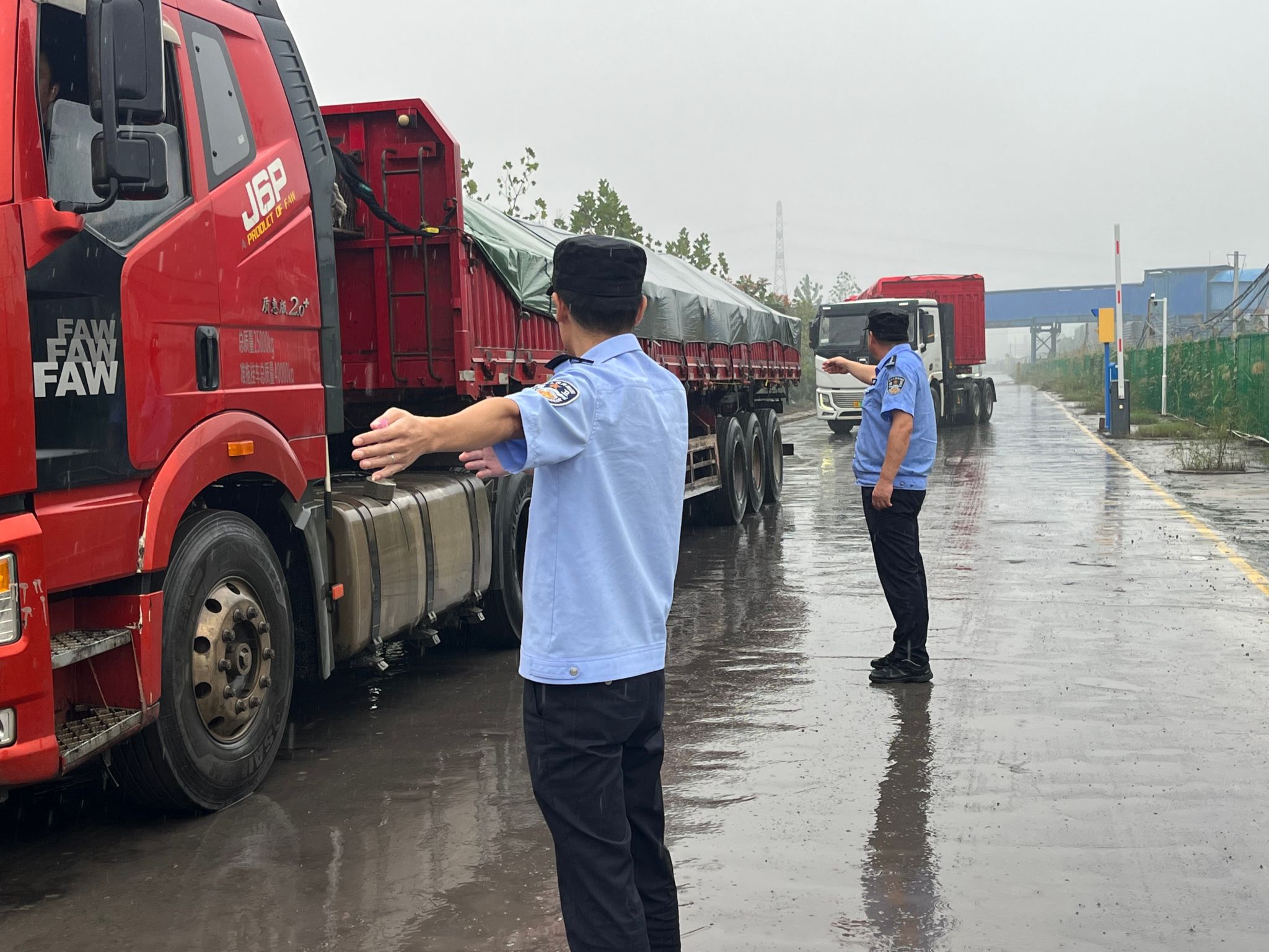 正值两节期间,煤仓发煤高峰期,每天有近百辆卡车进出,矸石山煤仓岗班组14名保卫队员分成三班轮岗,从早上6点到深夜10点,全程值守在煤仓现场。他们不仅要维护车辆进出秩序,防止雨天发煤车辆拥堵,还要负责煤仓周边安全巡逻、治安防范。该科结合实际保供发运情况,一是将煤仓班组执勤力量精准部署在煤仓入口、装煤区、计量磅房等关键环节,同时利用技防监控随时掌握煤炭发运车辆实时情况,实时做好现场监督装运工作,灵活掌控,为雨天煤炭发运筑牢安全防线,确保能源保供 “不断线”。二是煤仓班组的保卫队员做好每日执勤全天候区域巡查,重点排查储煤仓的消防设施、物资集散地、围墙防护网、煤仓安全等关键点位,齐心协力做好煤炭发运秩序的维护和监管工作。三是由于近日雨量持续,在储煤场,保卫人员与煤仓仓储班组协同作战,对煤堆覆盖防雨篷布,加固边坡防护设施,防止雨水冲刷导致煤炭流失或坍塌。连日的雨水导致发煤场地地面积水排泄不通,及时安排值班人员清理道岔区域积水,在特殊路段做好车辆引导和疏通,保障列车装卸作业安全有序通行。