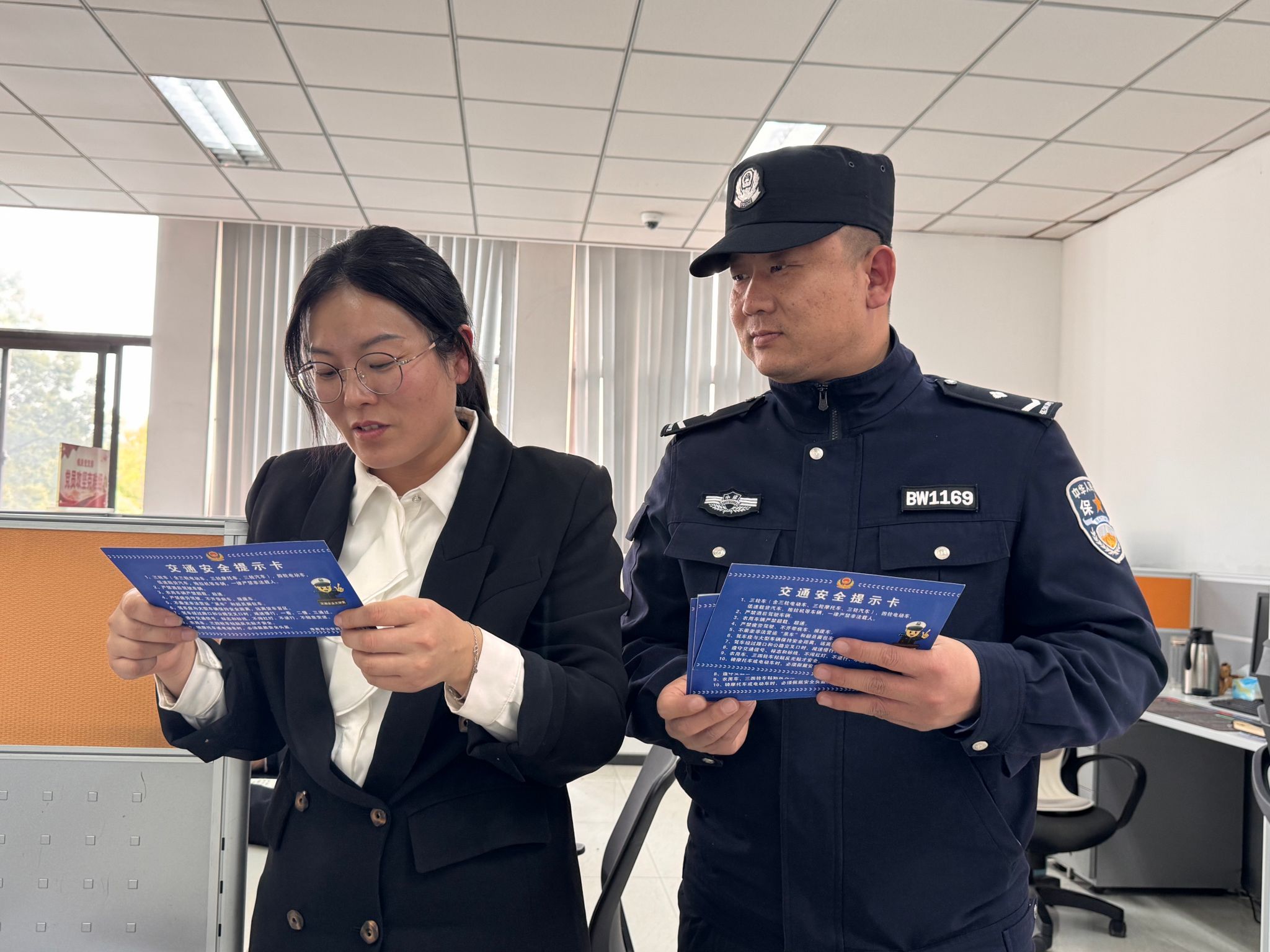 为切实强化公司机关职工交通安全意识,有效预防道路交通安全事故,保障职工出行安全与公司正常办公秩序,近日,保卫部公司机关保卫科组织专项宣传小组,前往公司机关各部室开展交通安全主题宣传活动,并现场发放《交通安全提示卡》。