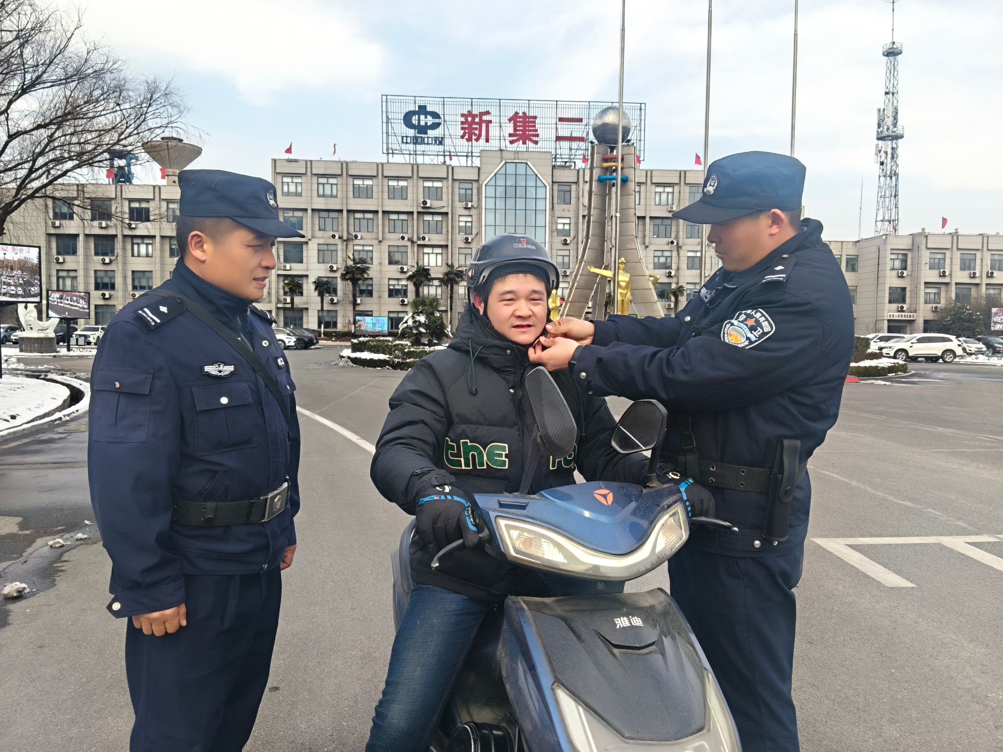 “您好,请正确佩戴安全头盔,系好下颌带。”近日,在新集二矿主干道上,新集二矿保卫科执勤人员对矿内行驶的电动车驾驶人员不规范佩戴安全头盔的行为进行劝导。