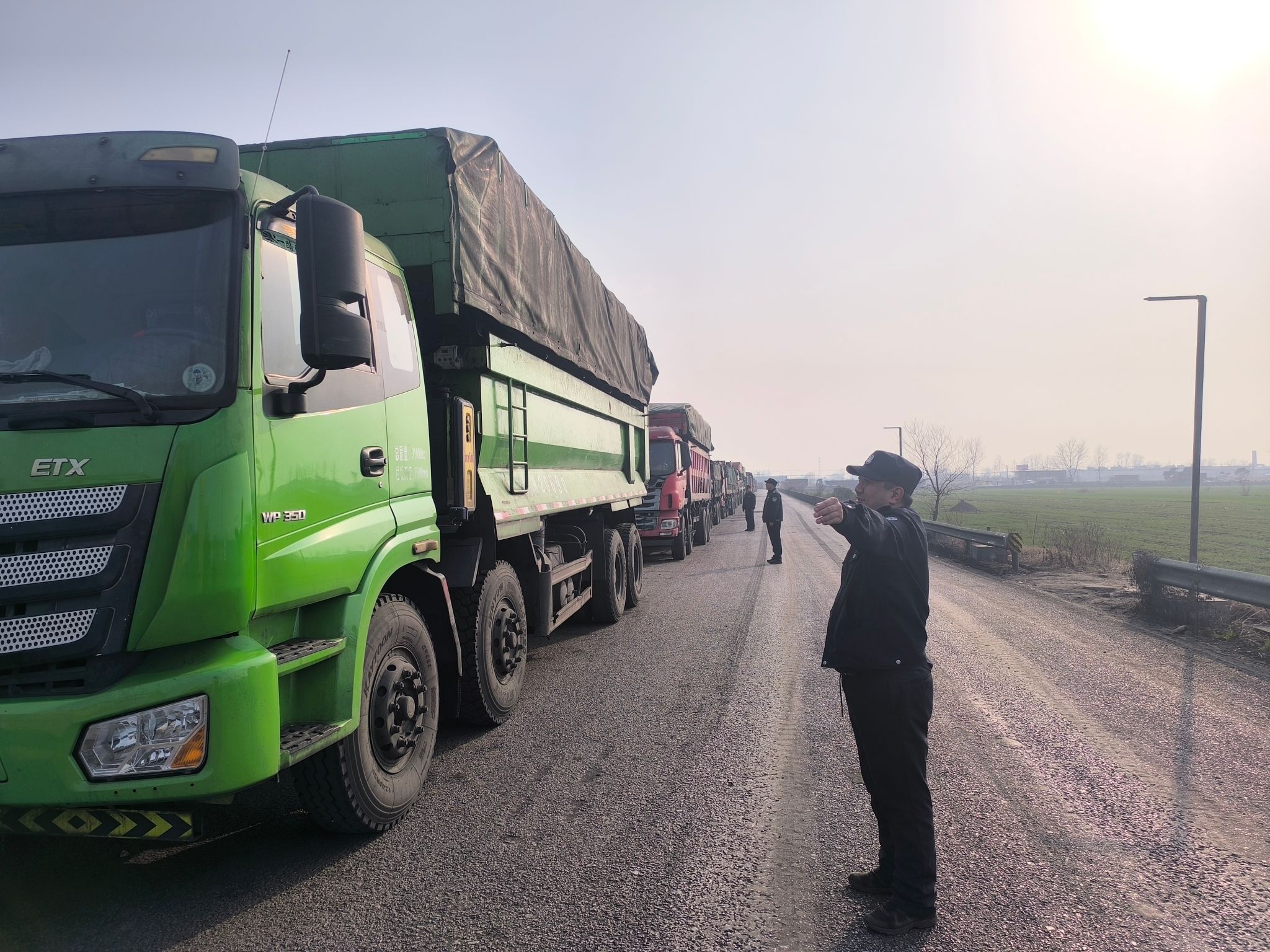 春节期间,矿区运输主干道上,满载煤炭的重型卡车往来穿梭、络绎不绝。保卫科队员身着制服,在车流中坚守值守、疏导交通,有序引导车辆安全通行。大家严格落实车辆检查、秩序维护、现场管控等工作措施,确保每一辆运煤车都能安全、高效驶离矿区,奔赴能源保供一线。