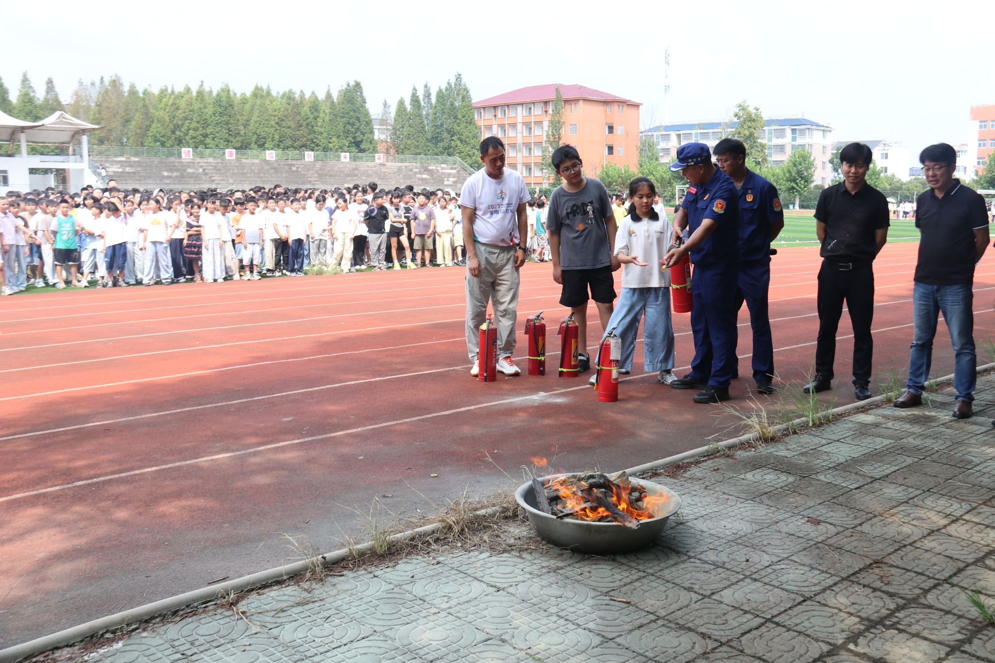实操演练过程中,队员们现场演示了灭火器的正确使用方法,并邀请了部分师生上台亲身体验。在队员们的指导下,师生们顺利完成了灭火操作,掌握了灭火器的使用技巧。此外,队员们还进行了自救互救技能的演示,包括心肺复苏等急救方法,让师生们学习到了在紧急情况下如何对伤者进行初步救治。