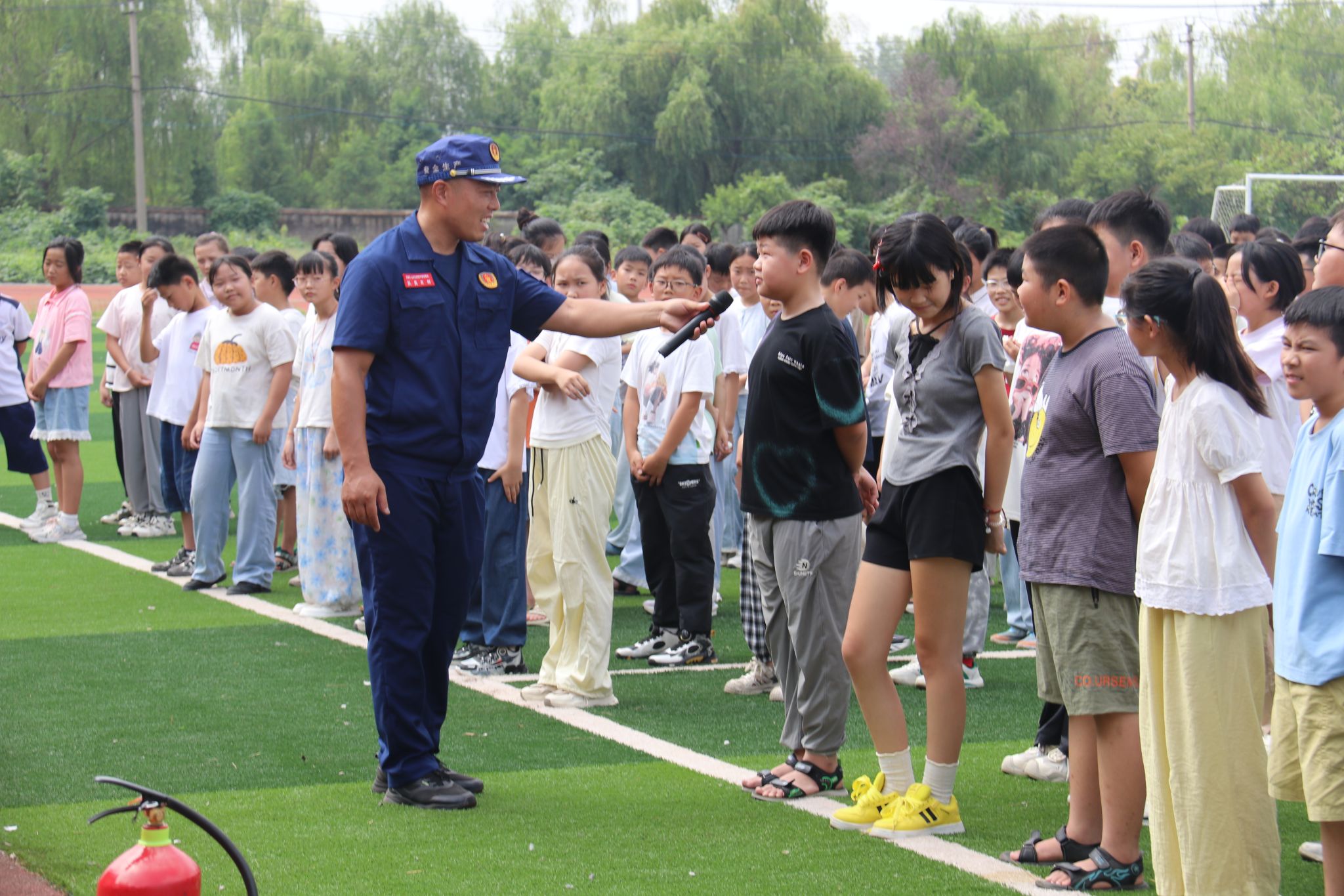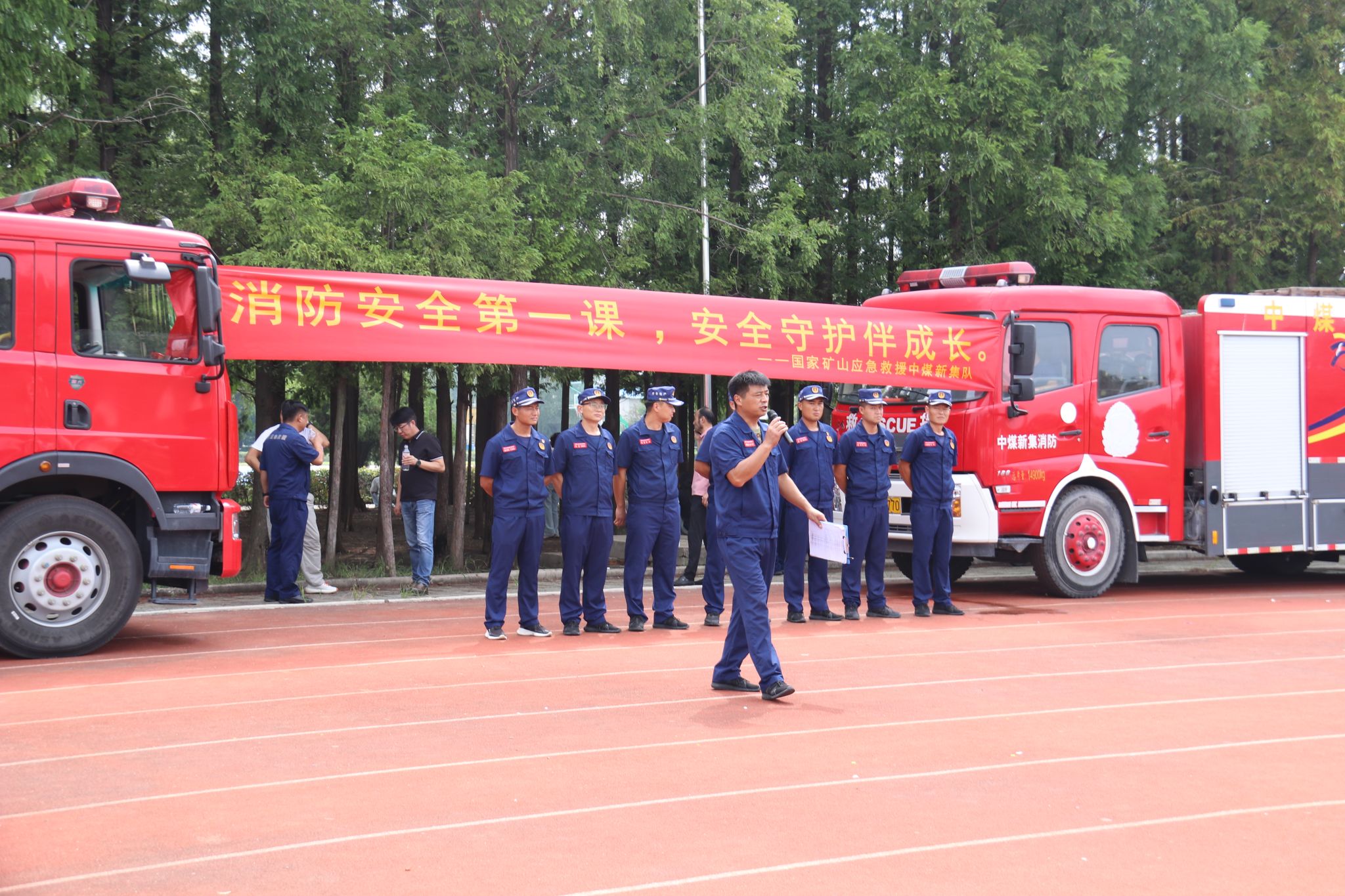 活动现场,新集救护队指战员通过多种形式向师生们传授安全知识。他们结合近年来发生的校园火灾案例,为同学们详细讲解了火灾的危害性、预防火灾的重要性以及火灾发生时的正确应对措施。在讲解过程中,队员们采用通俗易懂的语言,让同学们轻松理解复杂的安全知识。