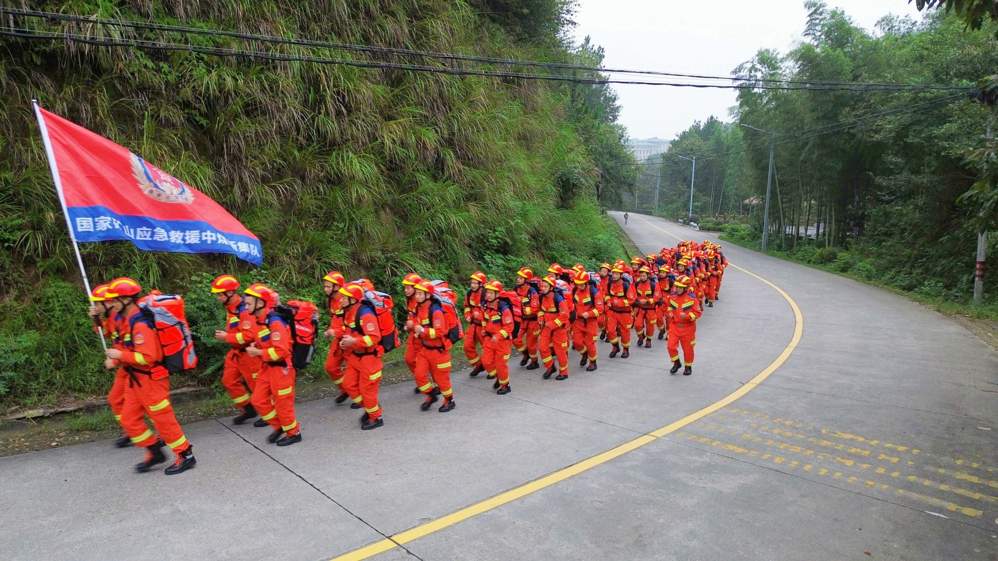 接到救援指令后,新集救护队迅速响应,第一时间成立了地震抢险救援指挥部,大队长唐述敏亲自挂帅担任总指挥,用时30分钟,紧急集结80名精锐指战员,携带各类救援装备200余台套,以及13辆救援、指挥、保障车辆,第一时间奔赴灾区。