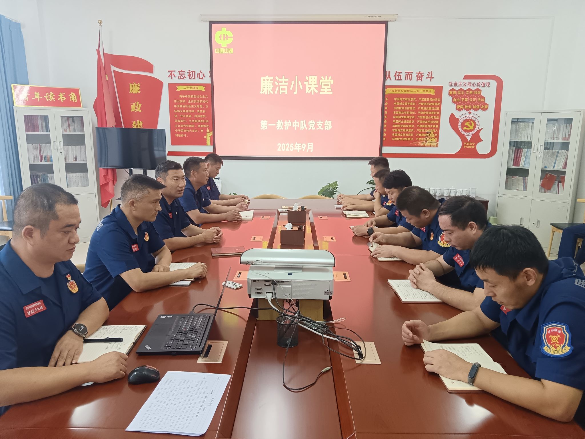 为进一步加强廉洁教育,强化党员干部廉洁自律意识,切实筑牢拒腐防变思想防线。9月15日,第一救护中队党支部以“筑牢抵制违规吃喝防线 敲响清正廉洁警钟”为主题,组织开展廉洁小课堂活动,将廉洁教育融入日常、抓在经常。