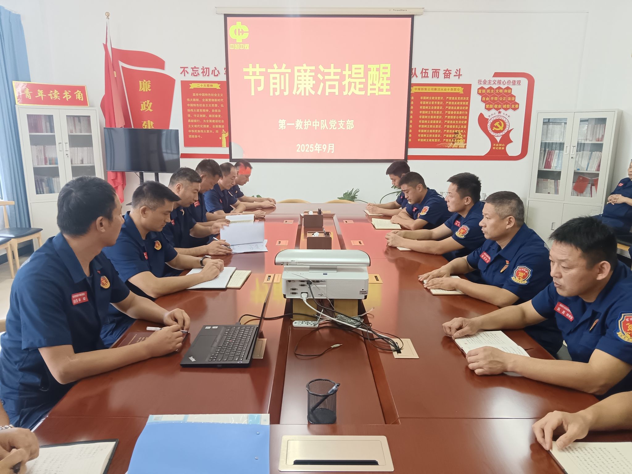 为进一步提高党员干部廉洁自律意识,营造风清气正的节日氛围。9月28日,新集救护队第一救护中队党支部组织开展了节前廉洁提醒活动,支部全体党员参加。